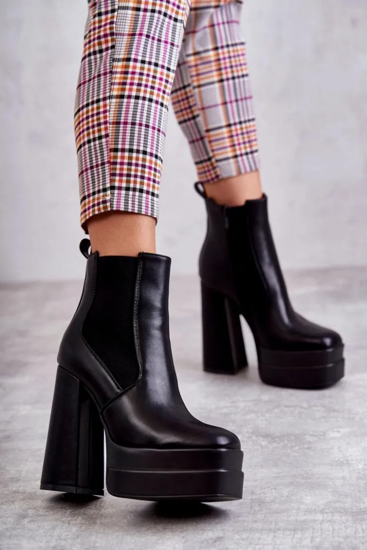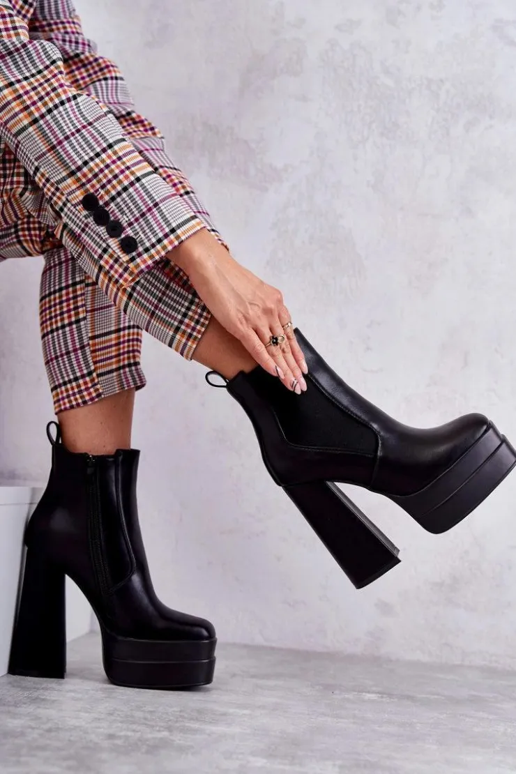 Te botki to prawdziwy HIT! Koniecznie musisz je mieć! Osadzone na modnym, szerokim obcasie w postaci słupka oraz platformie. Wykonane z eko skóry z elastyczną wstawką. Cholewka zapinana na suwak. Nosek kwadratowy. Dodatkowo botki te posiadają usztywniany zapiętek. Nie czekaj dłużej i kup je już teraz! Przy wyborze rozmiaru prosimy sugerować się tabelą rozmiarów.