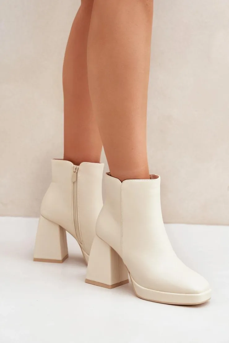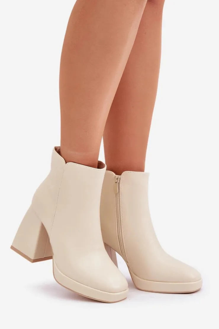 Botki damskie wykonane z eko skóry, osadzone na stabilnym słupkowym obcasie. Zapinane na zamek dla wygody użytkowania. Wnętrze ocieplane, co zapewnia komfort i ciepło w chłodniejsze dni. Uniwersalny model, który świetnie sprawdzi się w codziennych stylizacjach. Przy wyborze rozmiaru prosimy sugerować się tabelą rozmiarów.