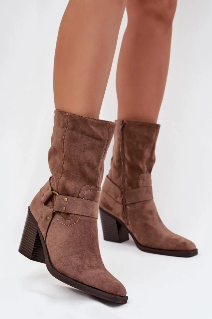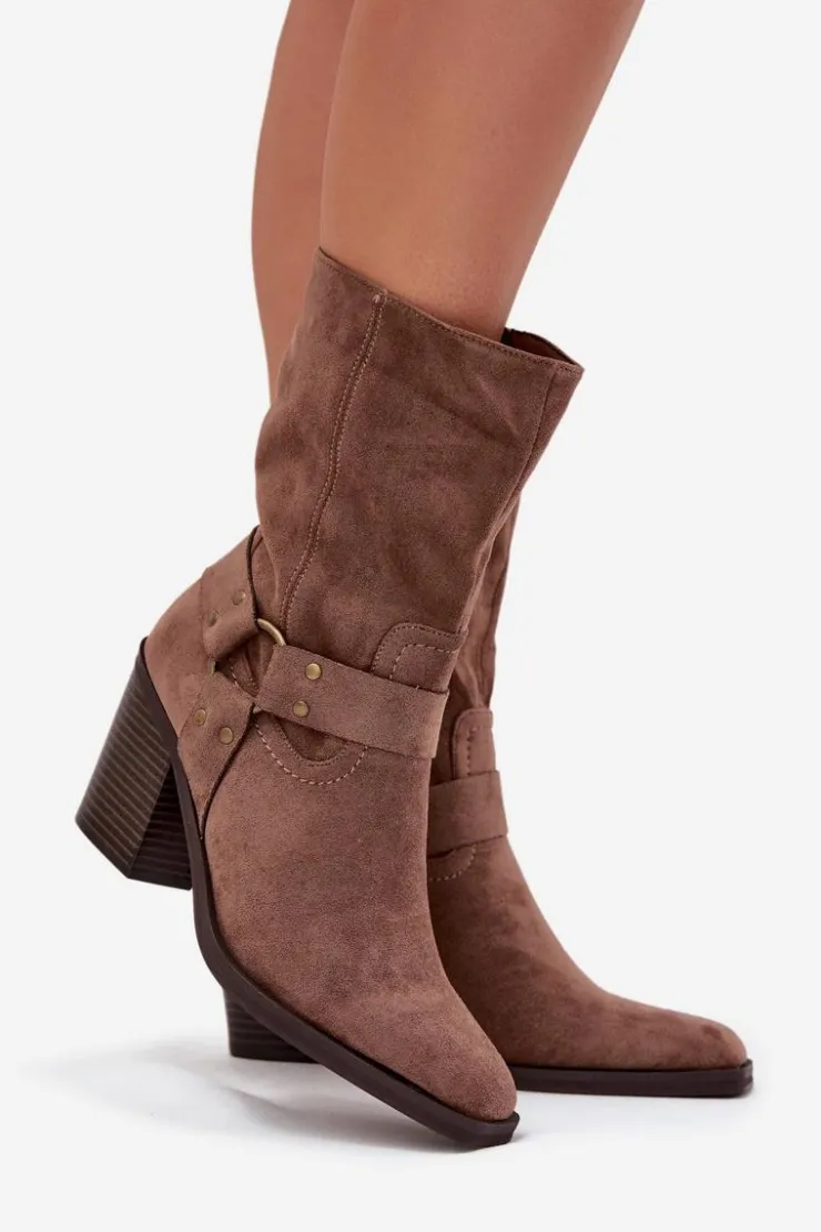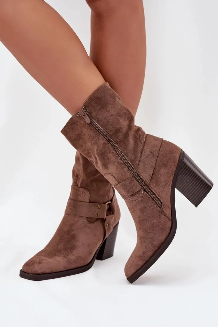Eleganckie botki damskie z eko zamszu to idealny wybór na chłodniejsze dni, łączący styl i wygodę. Osadzone na obcasie słupku, zapewniają komfort i stabilność przez cały dzień. Zapinane na zamek, umożliwiają łatwe zakładanie, a środek ocieplony kocem obuwniczym gwarantuje ciepło. Na cholewce znajdują się ozdobne paski oraz subtelny detal, który dodaje wyjątkowego charakteru. Noski delikatnie zaokrąglone zapewniają wygodę, a te botki będą doskonałym akcentem eleganckich zimowych stylizacji. Przy wyborze rozmiaru prosimy sugerować się tabelą rozmiarów.