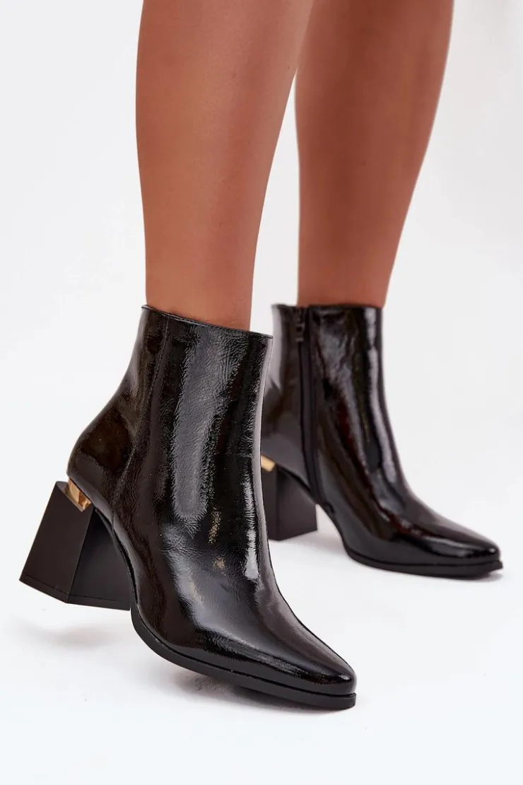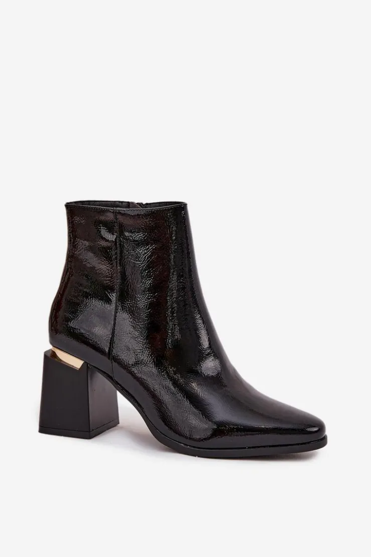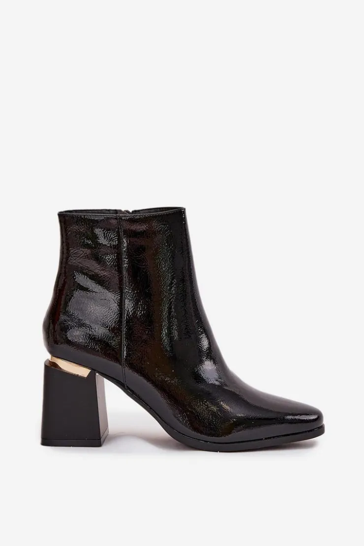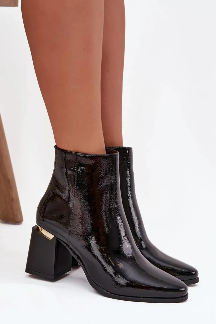 Botki damskie ocieplane z obcasem typu słupek i złotym akcentem to elegancka i praktyczna propozycja na chłodniejsze dni. Noski w kształcie migdała podkreślają kobiecy charakter, a zamek po boku ułatwia szybkie zakładanie i idealne dopasowanie do stopy. Stylowy złoty detal przy obcasie dodaje nowoczesnego akcentu, dzięki czemu botki doskonale sprawdzą się zarówno w codziennych, jak i bardziej eleganckich stylizacjach. Przy wyborze rozmiaru prosimy sugerować się tabelą rozmiarów.