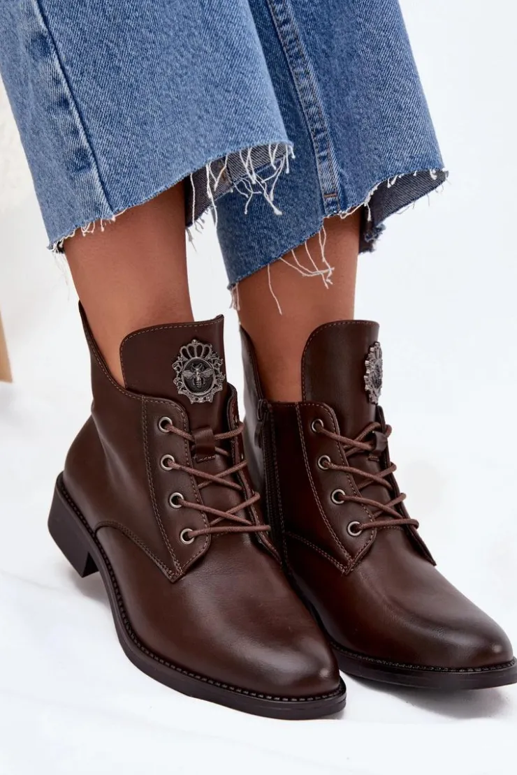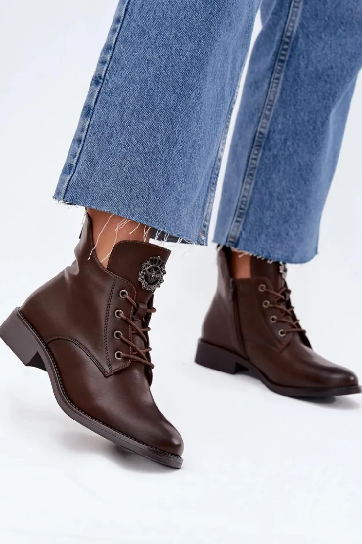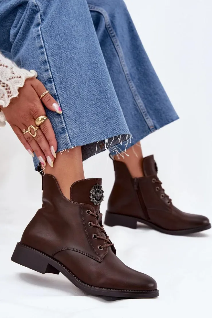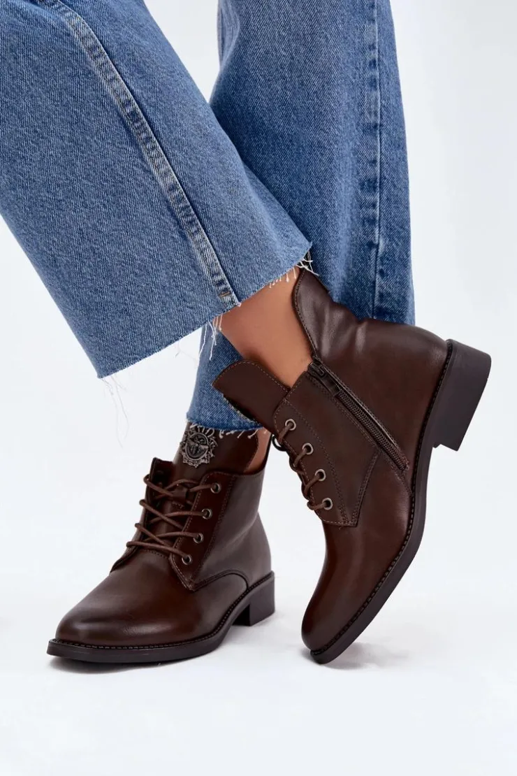 Te botki z eko skóry to świetny wybór na chłodniejsze dni, łączący styl z wygodą. Dzięki płaskiemu obcasowi możesz cieszyć się komfortem przez cały dzień. Model posiada sznurowanie i zamek, co sprawia, że łatwo je dopasować to tęgości stopy. Wnętrze ocieplone kocem obuwniczym zapewnia ciepło. Detal na języku dodaje im unikalnego charakteru. Świetnie pasują do codziennych, casualowych outfitów. Przy wyborze rozmiaru prosimy sugerować się tabelą rozmiarów.