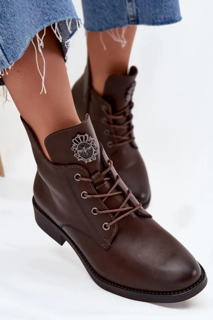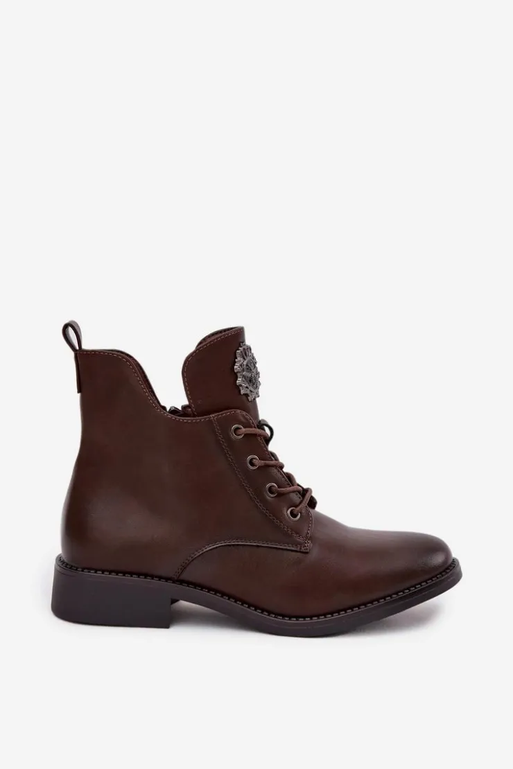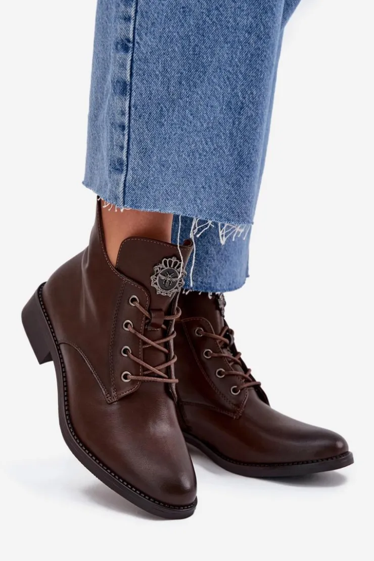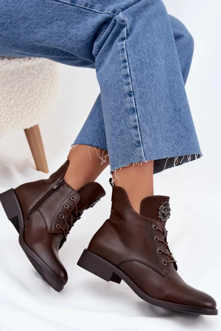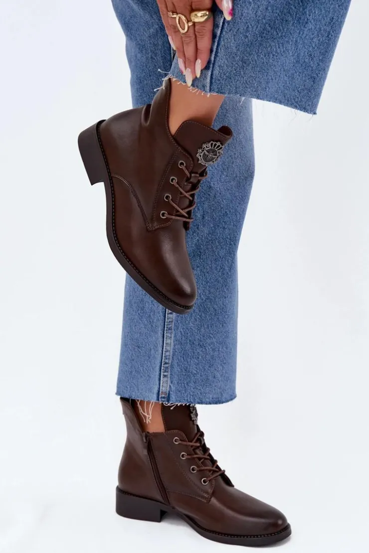 Te botki z eko skóry to świetny wybór na chłodniejsze dni, łączący styl z wygodą. Dzięki płaskiemu obcasowi możesz cieszyć się komfortem przez cały dzień. Model posiada sznurowanie i zamek, co sprawia, że łatwo je dopasować to tęgości stopy. Wnętrze ocieplone kocem obuwniczym zapewnia ciepło. Detal na języku dodaje im unikalnego charakteru. Świetnie pasują do codziennych, casualowych outfitów. Przy wyborze rozmiaru prosimy sugerować się tabelą rozmiarów.