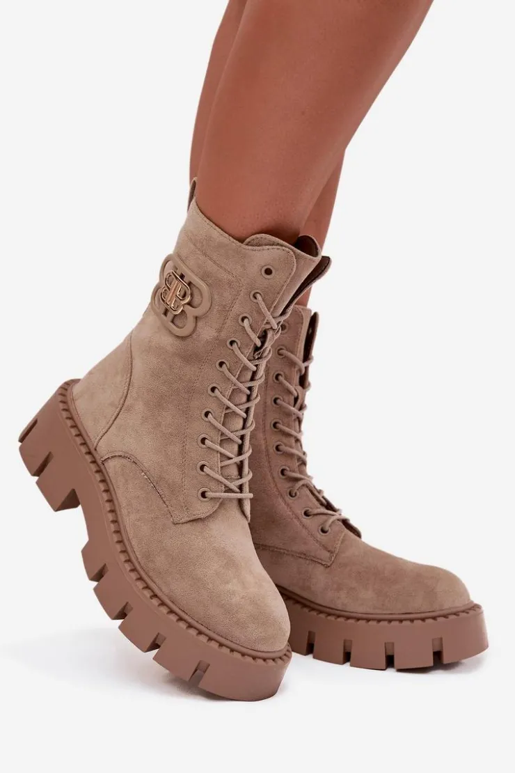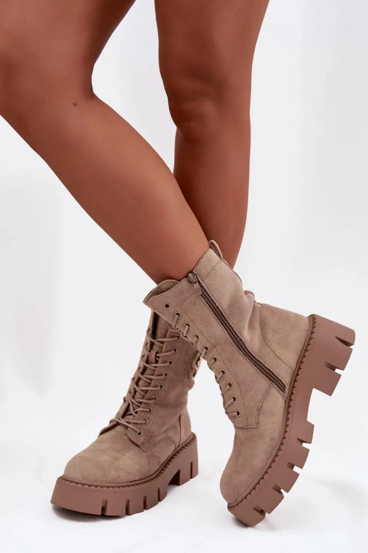 Botki workery damskie to połączenie miejskiego stylu i wygody. Model ocieplony miękkim kocem obuwniczym zapewnia ciepło w chłodniejsze dni, a połączenie sznurowania z zamkiem umożliwia idealne dopasowanie do stopy i łatwe zakładanie. Masywny obcas i platforma gwarantują stabilny krok, a subtelny ozdobny detal po boku cholewki dodaje charakteru i modowego akcentu, dzięki czemu botki świetnie sprawdzą się w codziennych stylizacjach. Przy wyborze rozmiaru prosimy sugerować się tabelą rozmiarów.