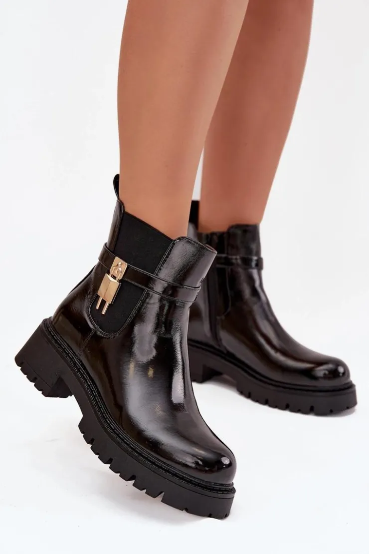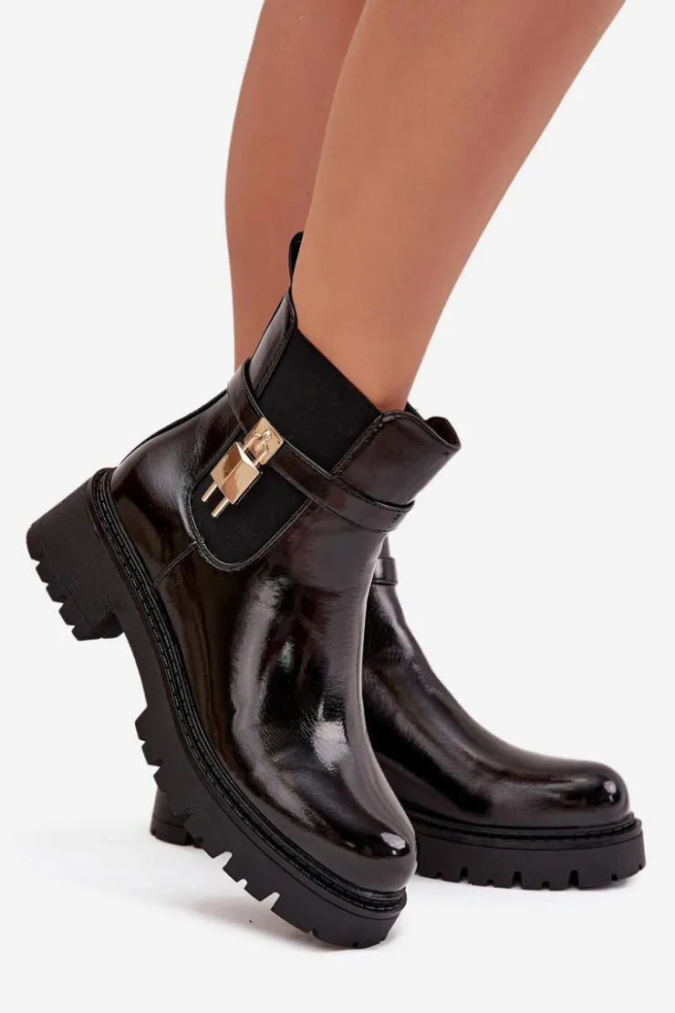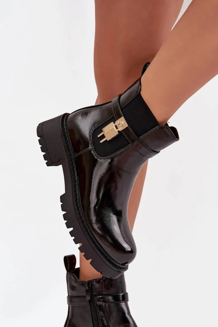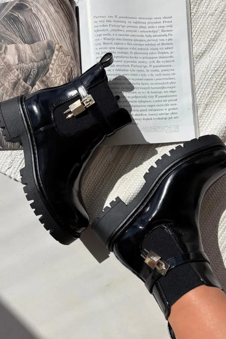 Damskie botki sztyblety wykonane z eko skóry. Osadzone na platformie z płaskim obcasem, oferują stabilność i komfort przez cały dzień. Zaokrąglone noski nadają im delikatny wygląd, a pasek ze złotym detalem na cholewce dodaje stylowego akcentu. Ocieplane kocem obuwniczym, zapewniają ciepło i komfort nawet w chłodniejsze dni. Model ten świetnie komponuje się z różnymi stylizacjami. Przy wyborze rozmiaru prosimy sugerować się tabelą rozmiarów.