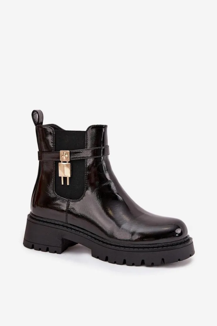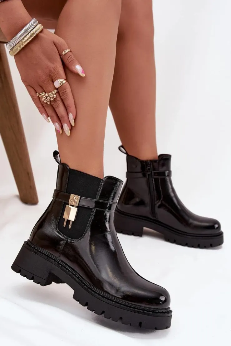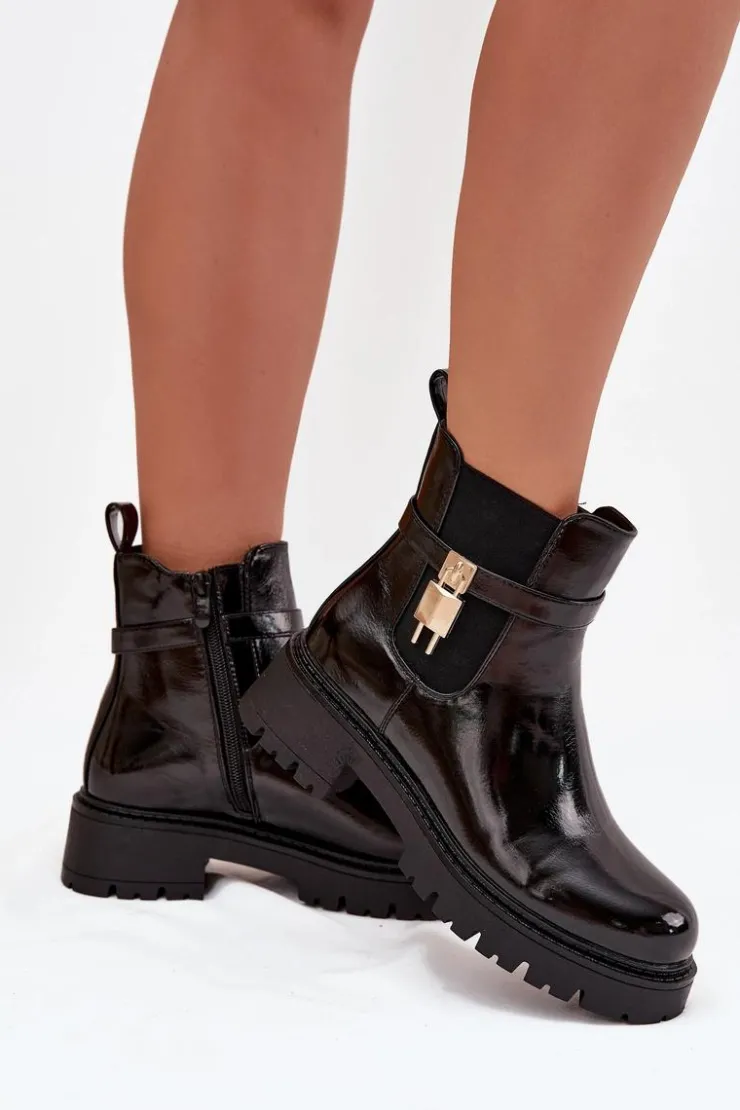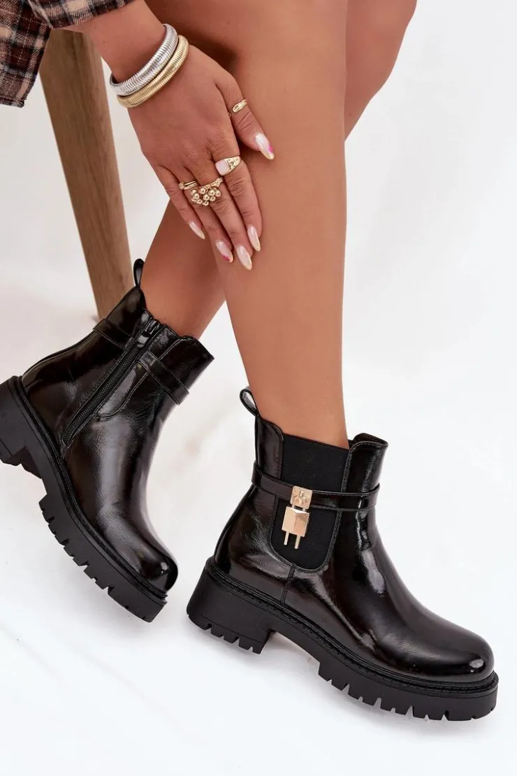Damskie botki sztyblety wykonane z eko skóry. Osadzone na platformie z płaskim obcasem, oferują stabilność i komfort przez cały dzień. Zaokrąglone noski nadają im delikatny wygląd, a pasek ze złotym detalem na cholewce dodaje stylowego akcentu. Ocieplane kocem obuwniczym, zapewniają ciepło i komfort nawet w chłodniejsze dni. Model ten świetnie komponuje się z różnymi stylizacjami. Przy wyborze rozmiaru prosimy sugerować się tabelą rozmiarów.