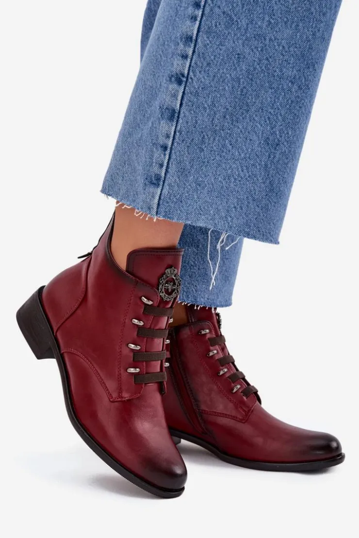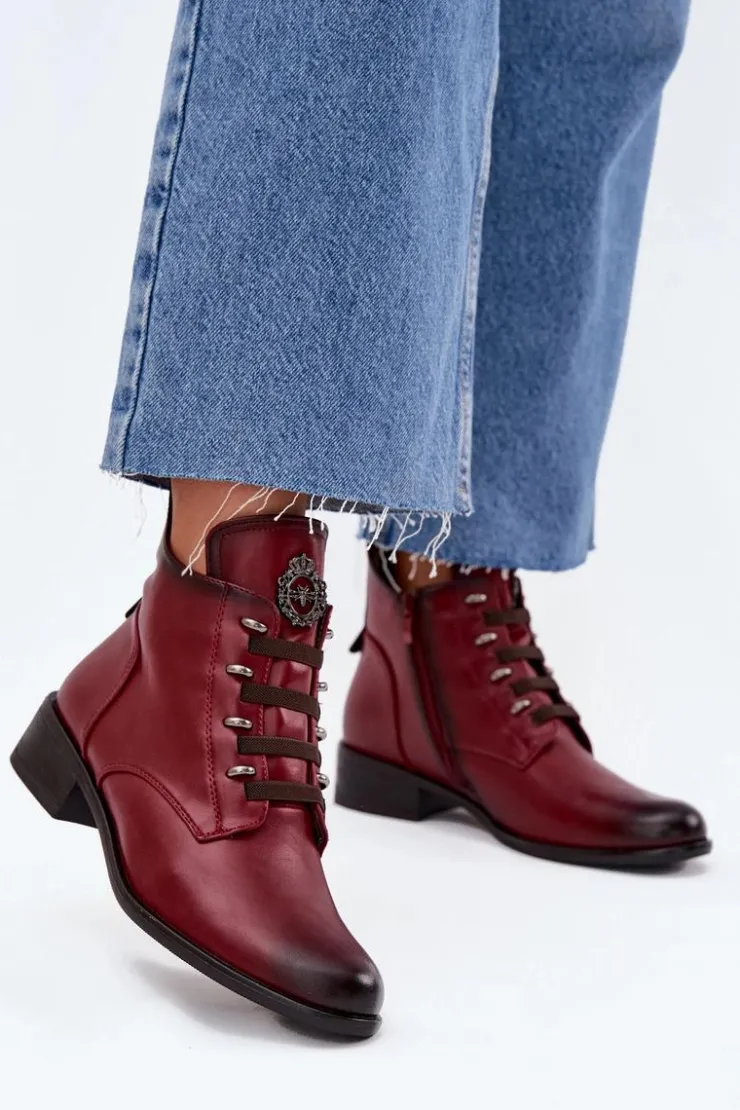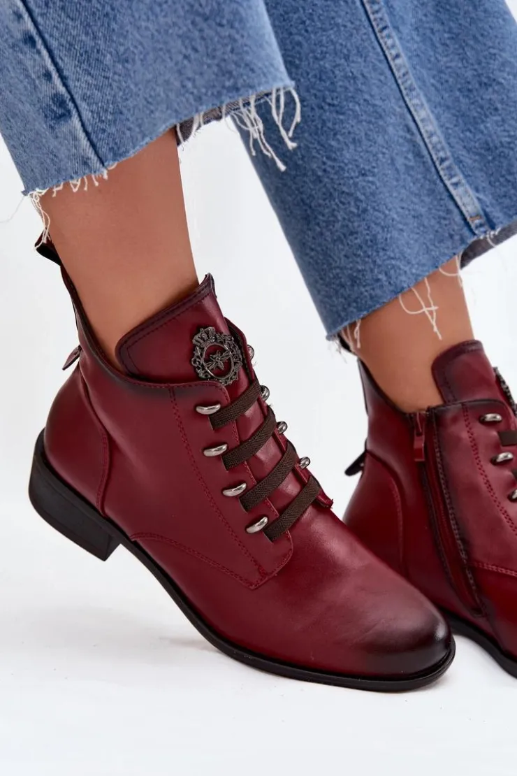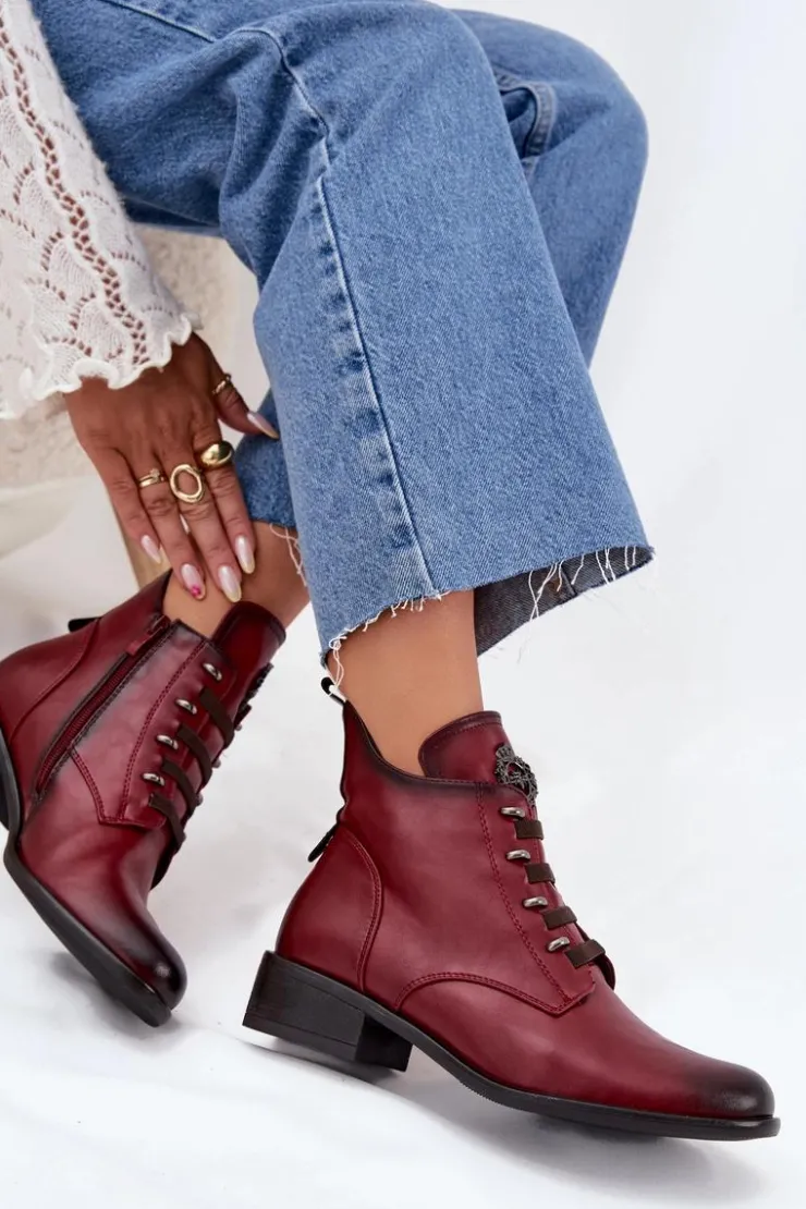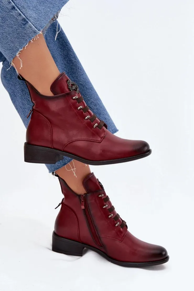 Boto Botki Ocieplane|Czarne Botki*Niskie Botki Ocieplane Na Zamek Z Ozdobą Bordowe Nevalia