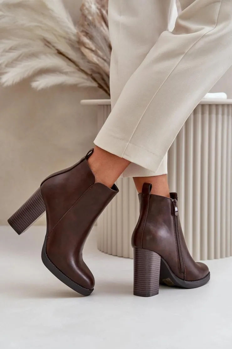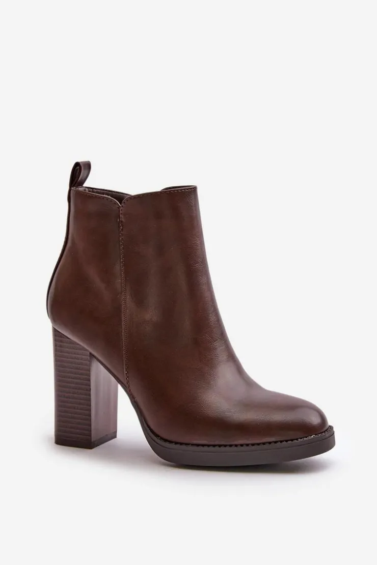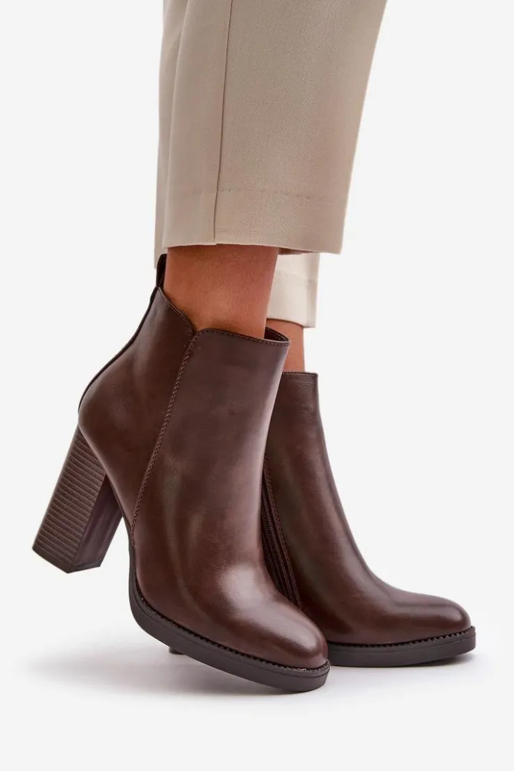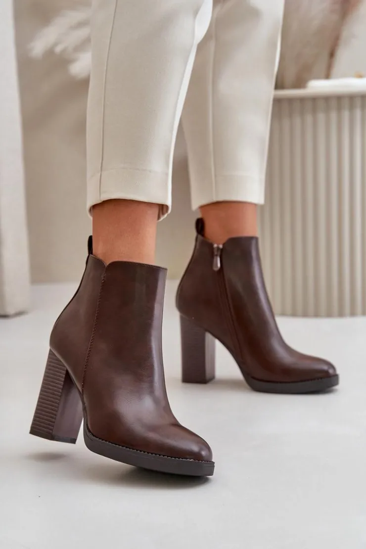Damskie botki wykonane z eko skóry. Osadzone na słupkowym obcasie. Zapinane na zamek. Środek ocieplony kocem obuwniczym, co sprawia, że model ten świetnie sprawdzi się w chłodniejsze dni. Noski zaokrąglone. Klasyczny fason, który z pewnością dopasujesz do wielu stylizacji! Przy wyborze rozmiaru prosimy sugerować się tabelą rozmiarów.