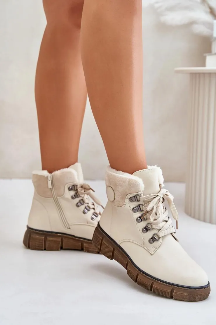 Trapery z eko skóry na platformie to idealne połączenie stylu i funkcjonalności na chłodne dni. Sznurowane i zapinane na zamek, co zapewnia wygodne zakładanie oraz idealne dopasowanie do stopy. Wnętrze ocieplane miękkim futerkiem gwarantuje ciepło nawet w najzimniejsze dni. Platforma dodaje modnego wyglądu, jednocześnie zapewniając dodatkową ochronę przed zimnem i wilgocią. To świetny wybór dla osób szukających praktycznego, a zarazem stylowego obuwia na zimę. Przy wyborze rozmiaru prosimy sugerować się tabelą rozmiarów.