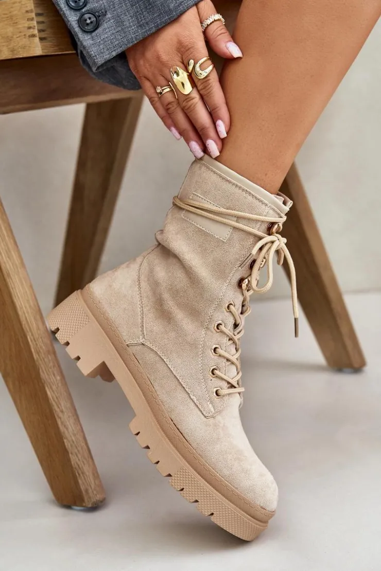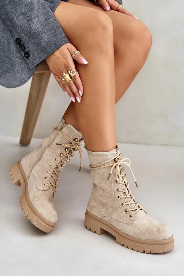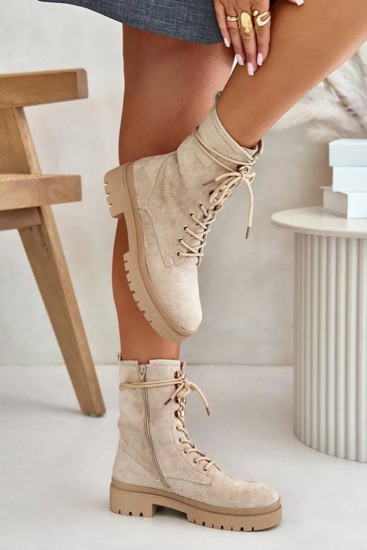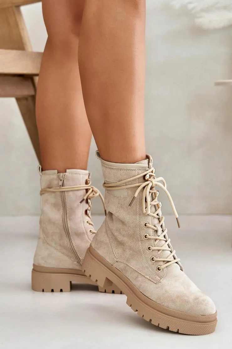 Boto Botki Sznurowane|Botki Płaskie*Botki Workery Damskie Na Zamek Z Eko Zamszu Beżowe Savalann