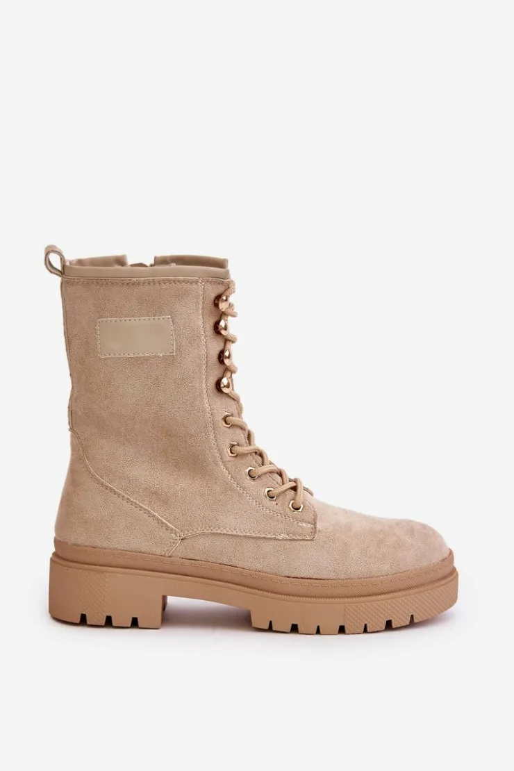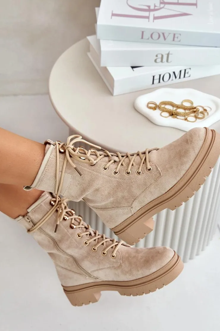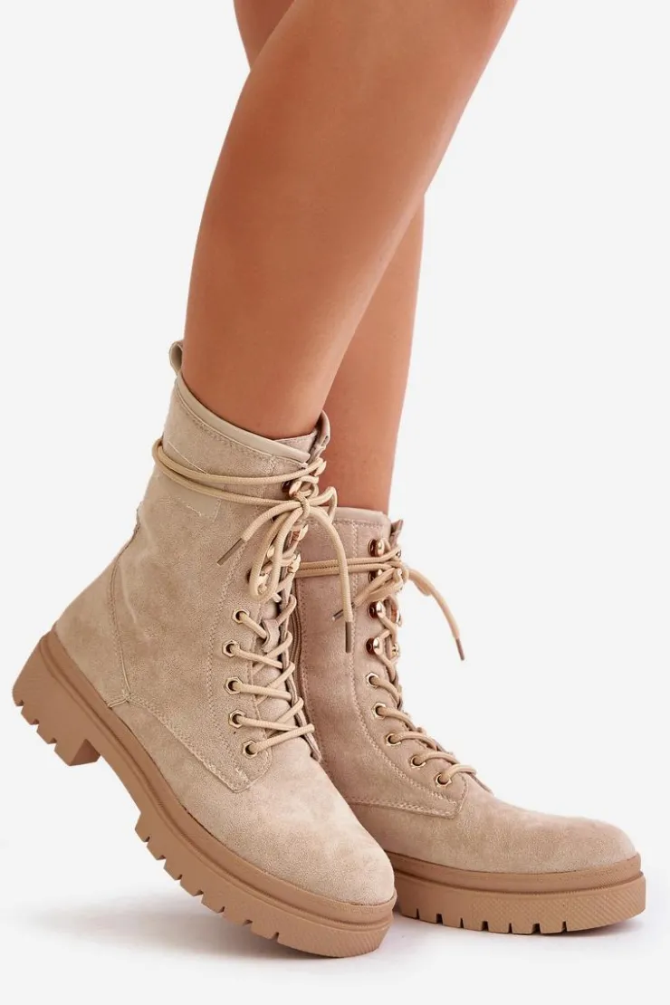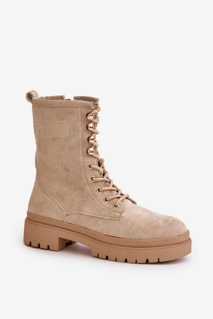 Boto Botki Sznurowane|Botki Płaskie*Botki Workery Damskie Na Zamek Z Eko Zamszu Beżowe Savalann