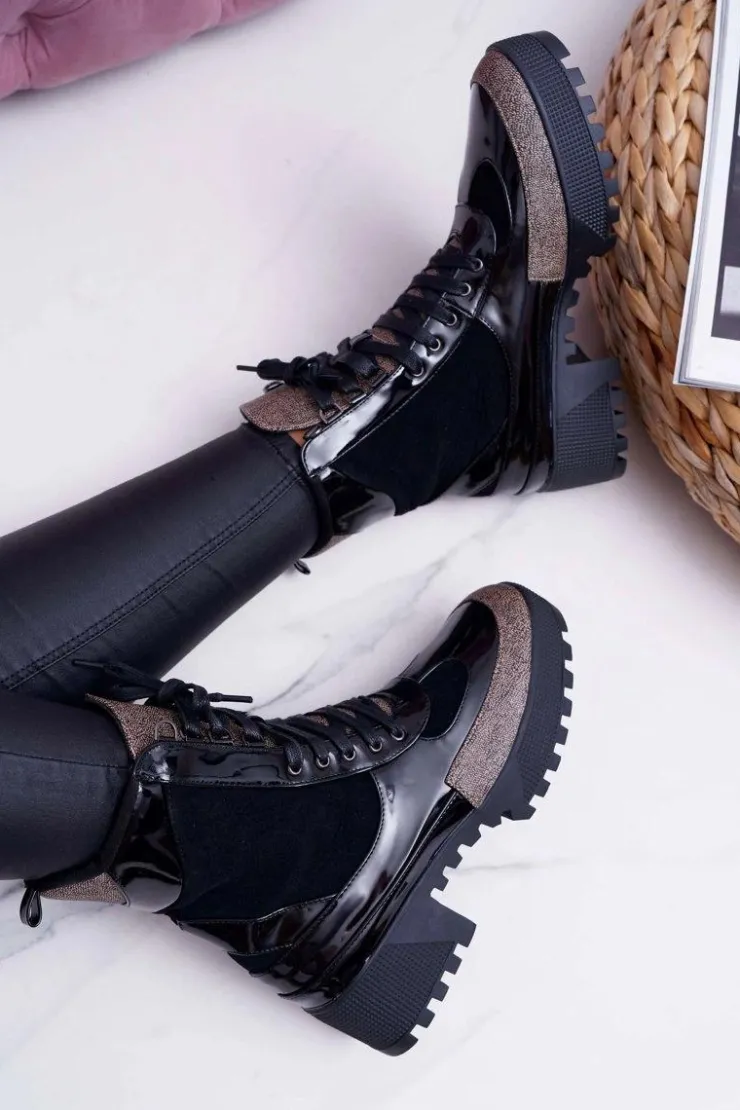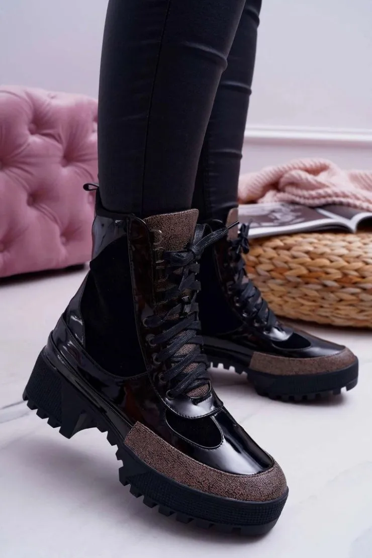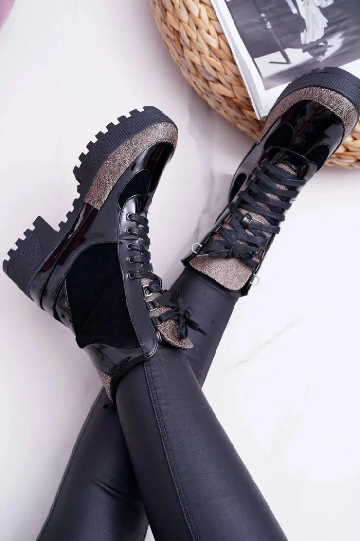 Boto Botki Sznurowane|Botki Płaskie*Damskie Botki Wysokie Czarne Trapery Havok
