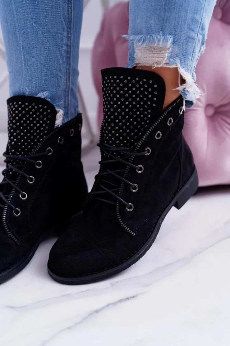 Boto Botki Sznurowane|Botki Workery*Damskie Botki Sznurowane Workery Zamek Sparks