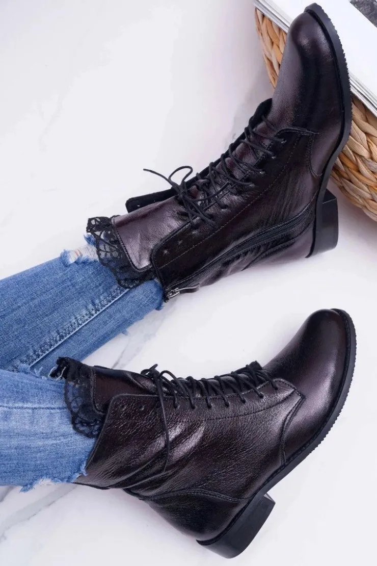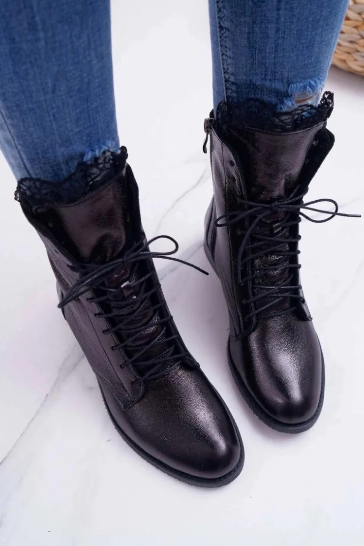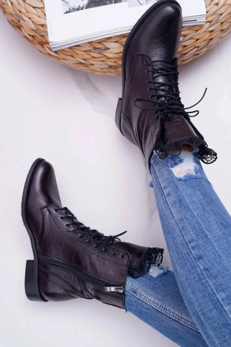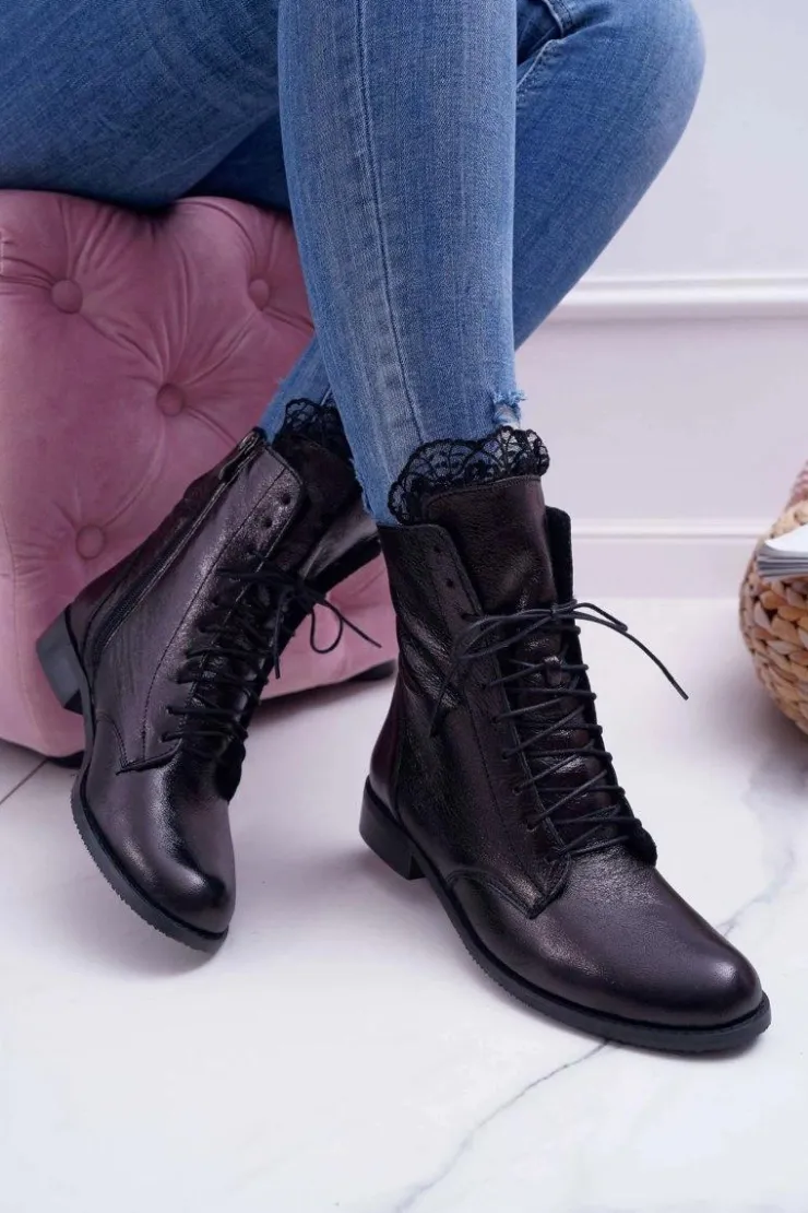 Boto Botki Sznurowane|Botki Zimowe Damskie*Botki Damskie Skóra Naturalna Nicole Czarne 2193