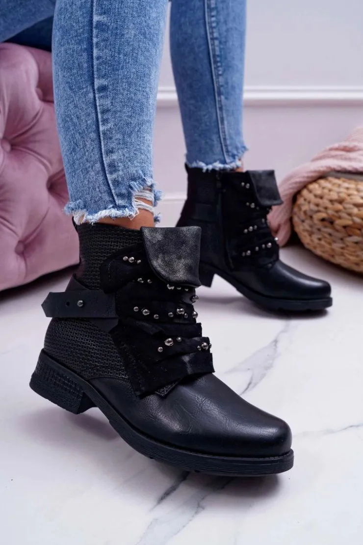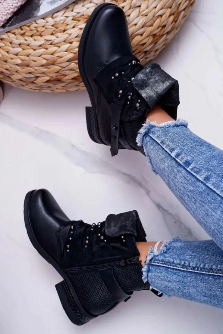 Boto Botki Sznurowane|Botki Zimowe Damskie*Damskie Botki Płaski Obcas Ciepłe Czarne Debra