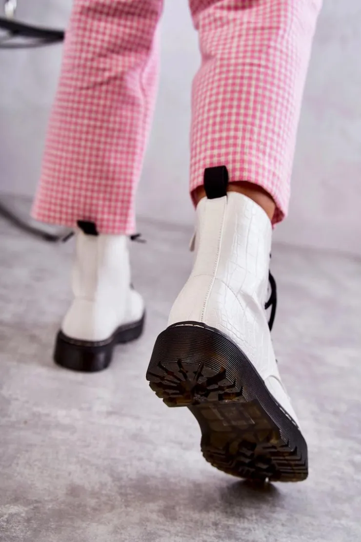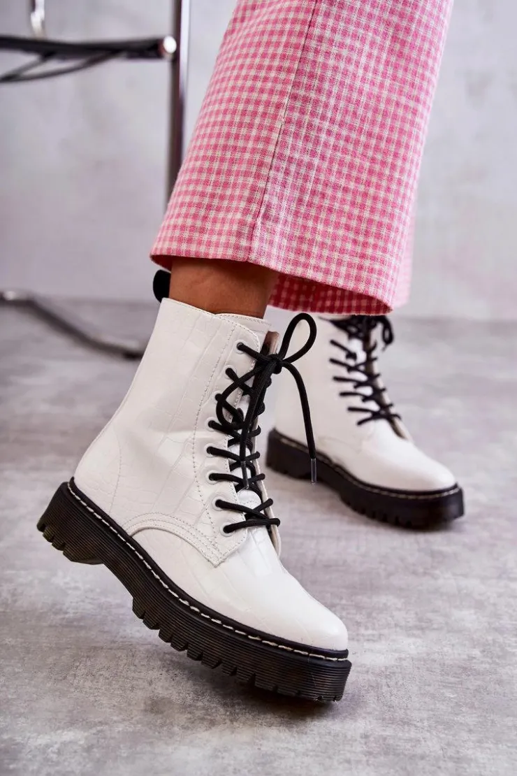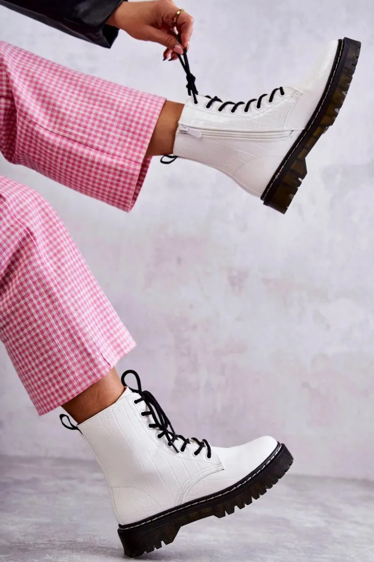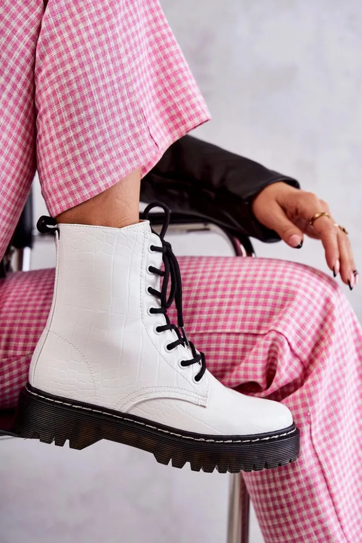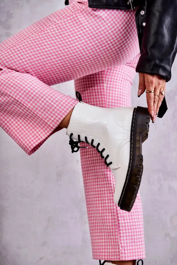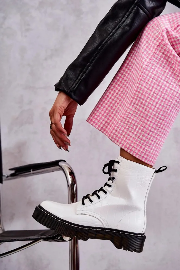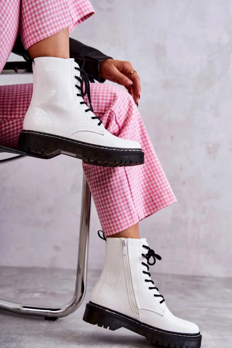 Damskie botki zostały wykonane z eko skóry. Buty te posiadają suwak z boku cholewki oraz sznurowanie. Model ten posiada usztywniany zapiętek. W środku zostały ocieplone kocem obuwniczym. Traperowa podeszwa świetnie ochroni przed zimnem. Dodatkowo jest obszyta nicią. Koniecznie sprawdź także pozostałe modele botków dostępnych w naszej ofercie! Przy wyborze rozmiaru prosimy sugerować się tabelą rozmiarów.