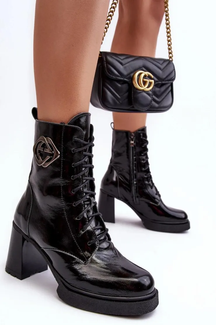 Modne i wygodne damskie botki zostały wykonane z wysokiej jakości naturalnych skór. Model ten jest klasycznie sznurowany oraz posiada suwak z boku cholewki. Botki osadzono na platformie i obcasie w postaci słupka. Środek został ocieplony kocem obuwniczym. Wysoka cholewka oraz usztywniany zapiętek zapewnią odpowiednią stabilizację nogi. Ten model właśnie powinien znaleźć się w Twojej szafie! Przy wyborze rozmiaru prosimy kierować się tabelą rozmiarów.