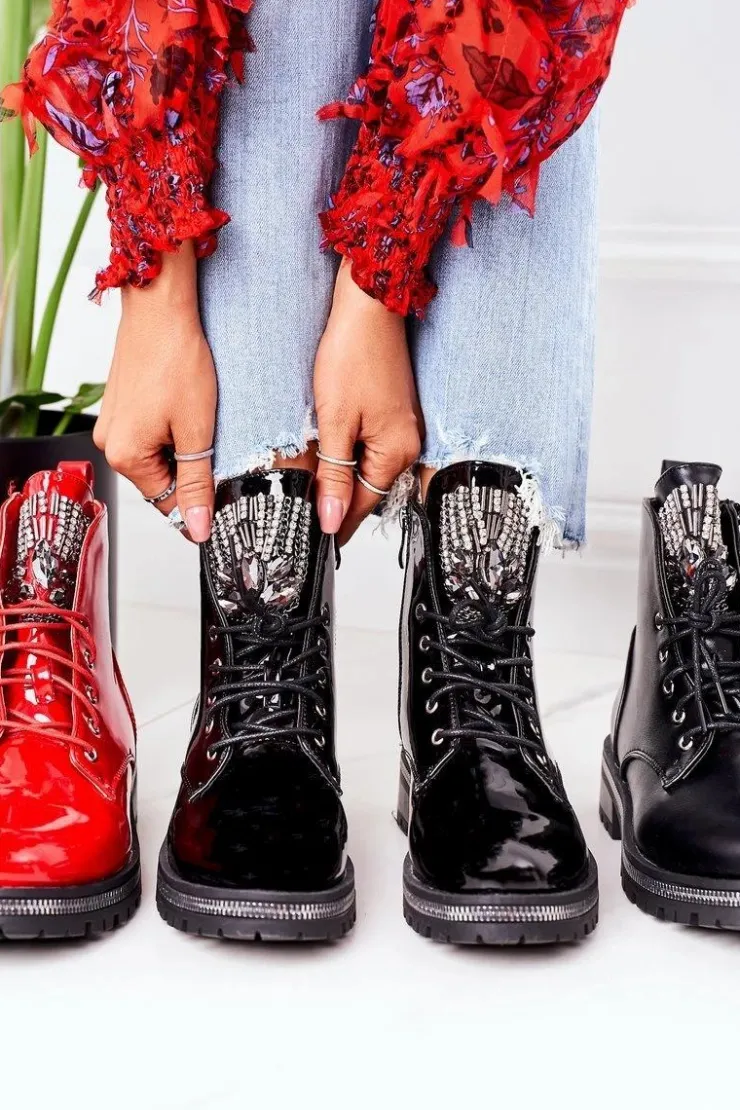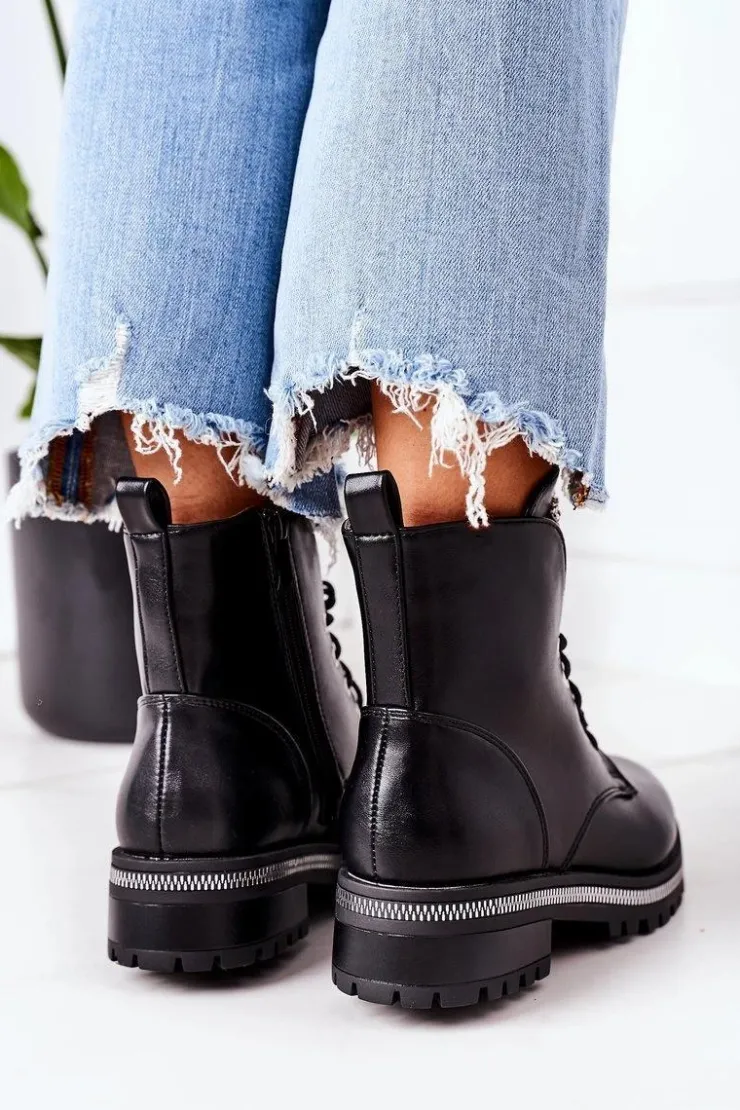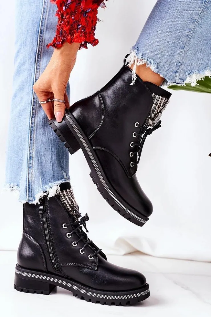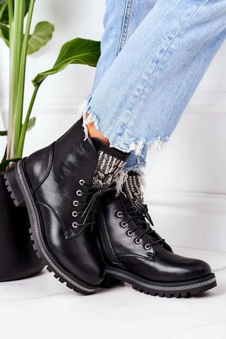 Wyjątkowe botki damskie wykonane z eko skóry. Workery są ocieplone miłym w dotyku kocem obuwniczym. Przy wyborze rozmiaru prosimy sugerować się tabelą rozmiarów.