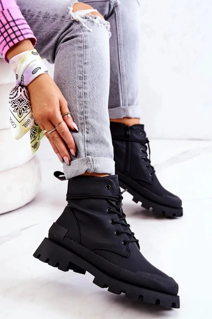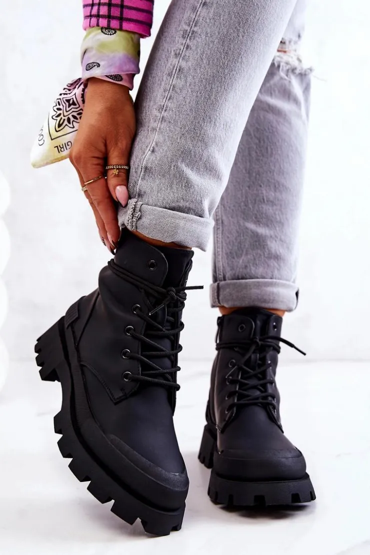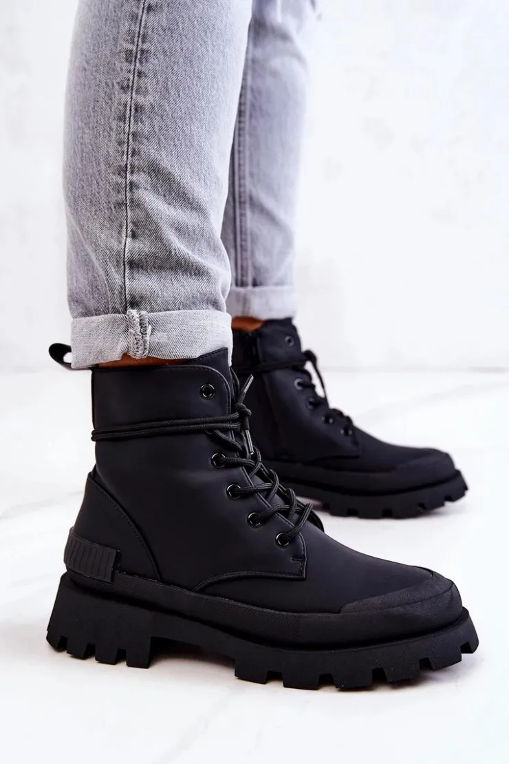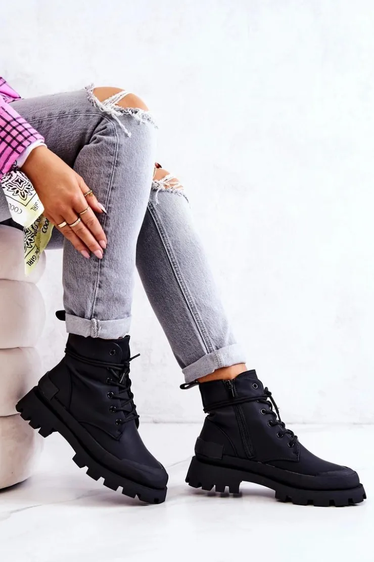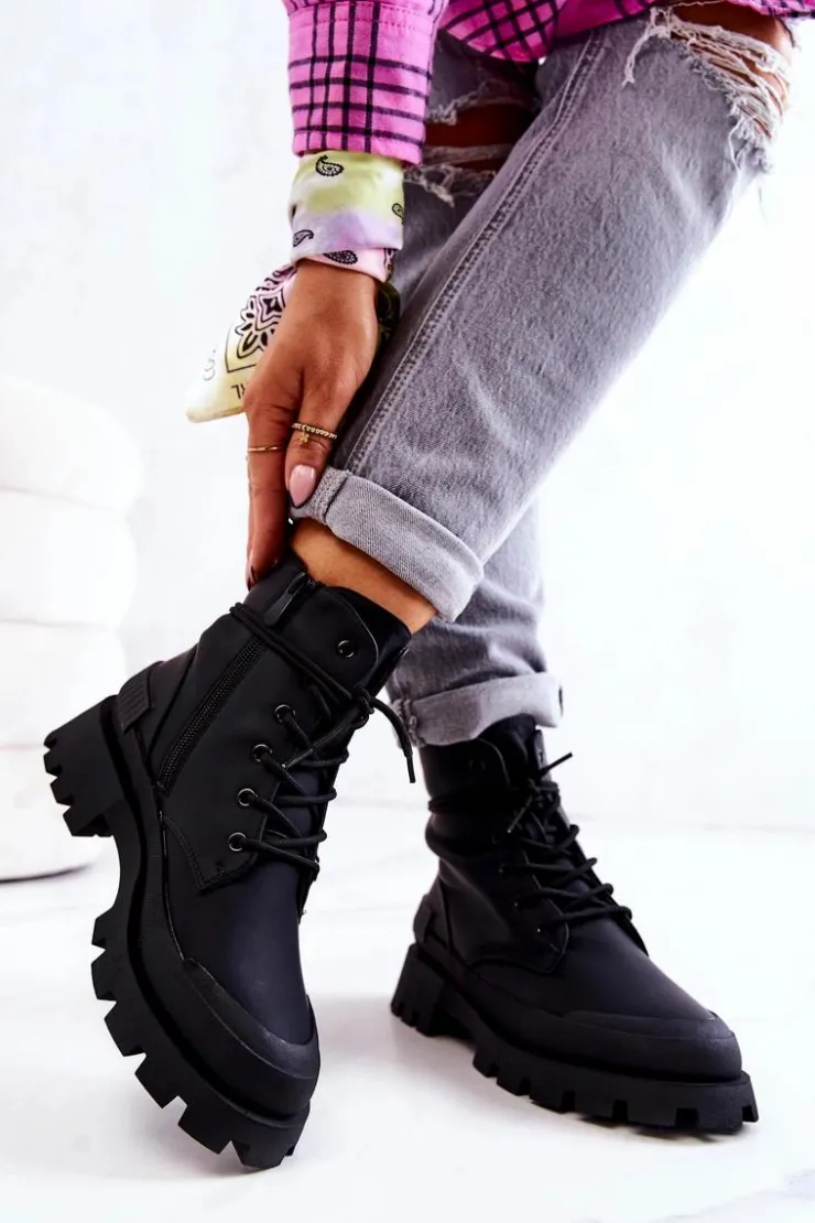 Botki wykonane z wierzchu ze skóry ekologicznej. Posiadają wiązanie oraz suwak. Botki są ocieplane miłym w dotyku kocem obuwniczym. Klasyczny fason idealnie sprawdzi się podczas wielu stylizacji. Traperowa podeszwa zapewni stabilność na każdym kroku. Przy wyborze rozmiaru prosimy sugerować się tabelą rozmiarów.