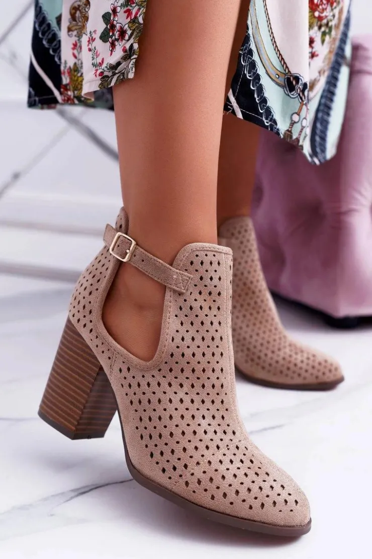 Boto Botki Wiosenne|Botki Na Słupku*Botki Damskie Na Obcasie Wiosenne Ażurowe Beżowe GoodDay