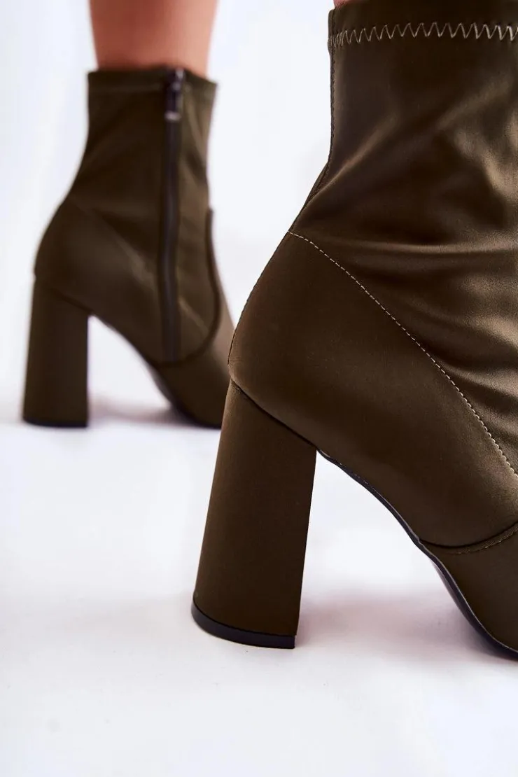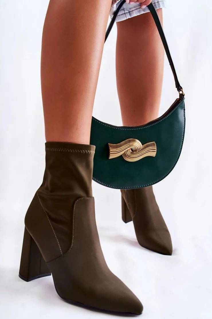 Piękne botki z wysoką cholewką za kostkę. Buty te posiadają usztywniany zapiętek. Nosek w szpic. Zapinane na suwak z boku cholewki. Wygodna wkładka została wykonana z eko skóry. Osadzone na masywnym obcasie w postaci słupka. Świetnie sprawdzą się zarówno do eleganckich stylizacji, jak i tych klasycznych. Koniecznie sprawdź pozostałe modele botków! Przy wyborze rozmiaru prosimy sugerować się tabelą rozmiarów.