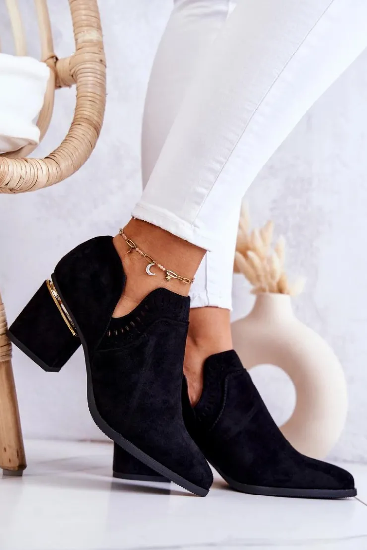 Modny fason w stylu kowbojek wykonane z eko zamszu w ażurowy wzorek. Buty posiadają nosek w szpic oraz stabilny obcas w postaci słupka. Botki idealnie wpasują się w wiosenno-letnie stylizacje. W środku posiadają eko skórzaną wkładkę. Koniecznie musisz je mieć! Przy wyborze rozmiaru prosimy sugerować się tabelą rozmiarów.