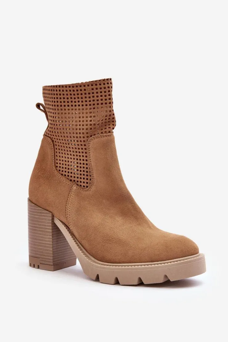 Modne, ażurowe botki na obcasie w postaci słupka zostały wykonane z wysokiej jakości skóry naturalnej. Zapinane na suwak z boku cholewki. Miękka, niezwykle wygodna wkładka została wykonana również z naturalnej skóry. Świetny model do wielu stylizacji! Przy wyborze rozmiaru prosimy sugerować się tabelą rozmiarów.