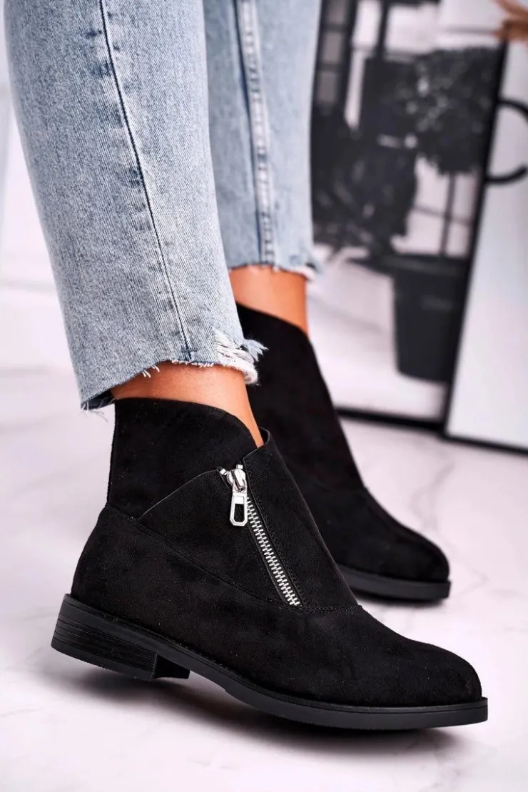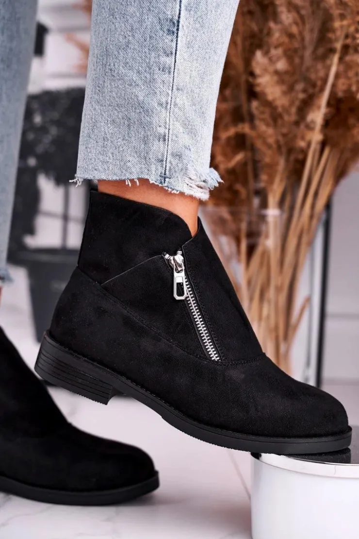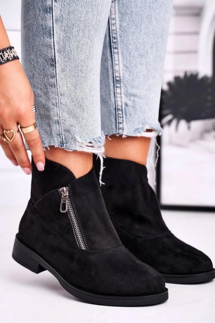 Boto Botki Zamszowe|Botki Płaskie*Damskie Botki Z Zamkiem Zamszowe Czarne Juno