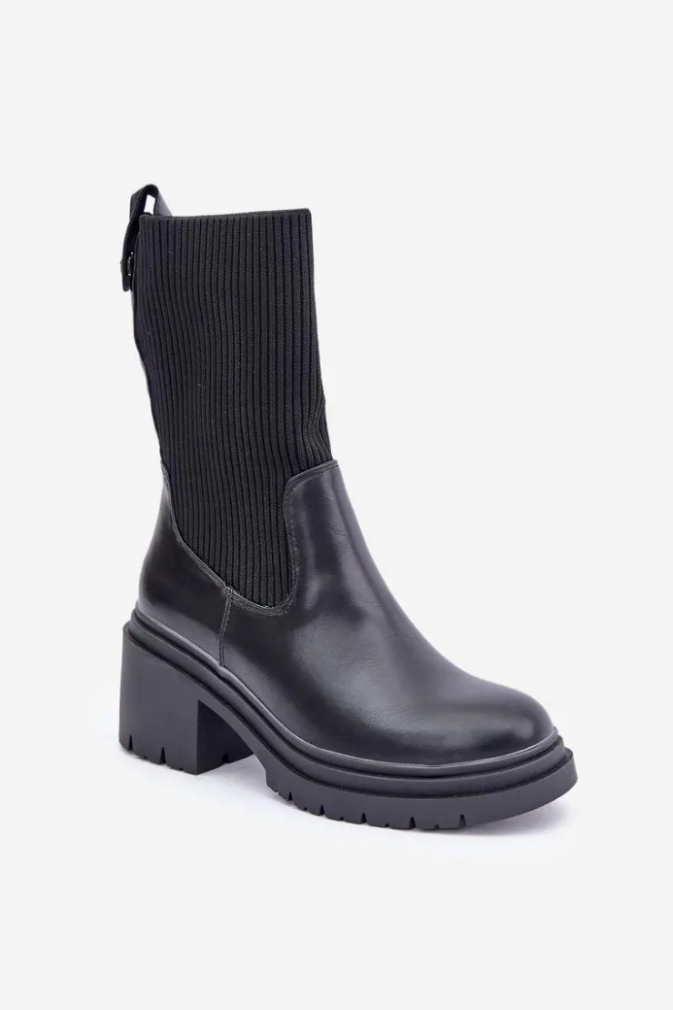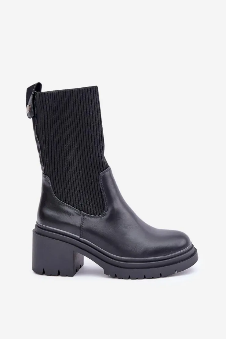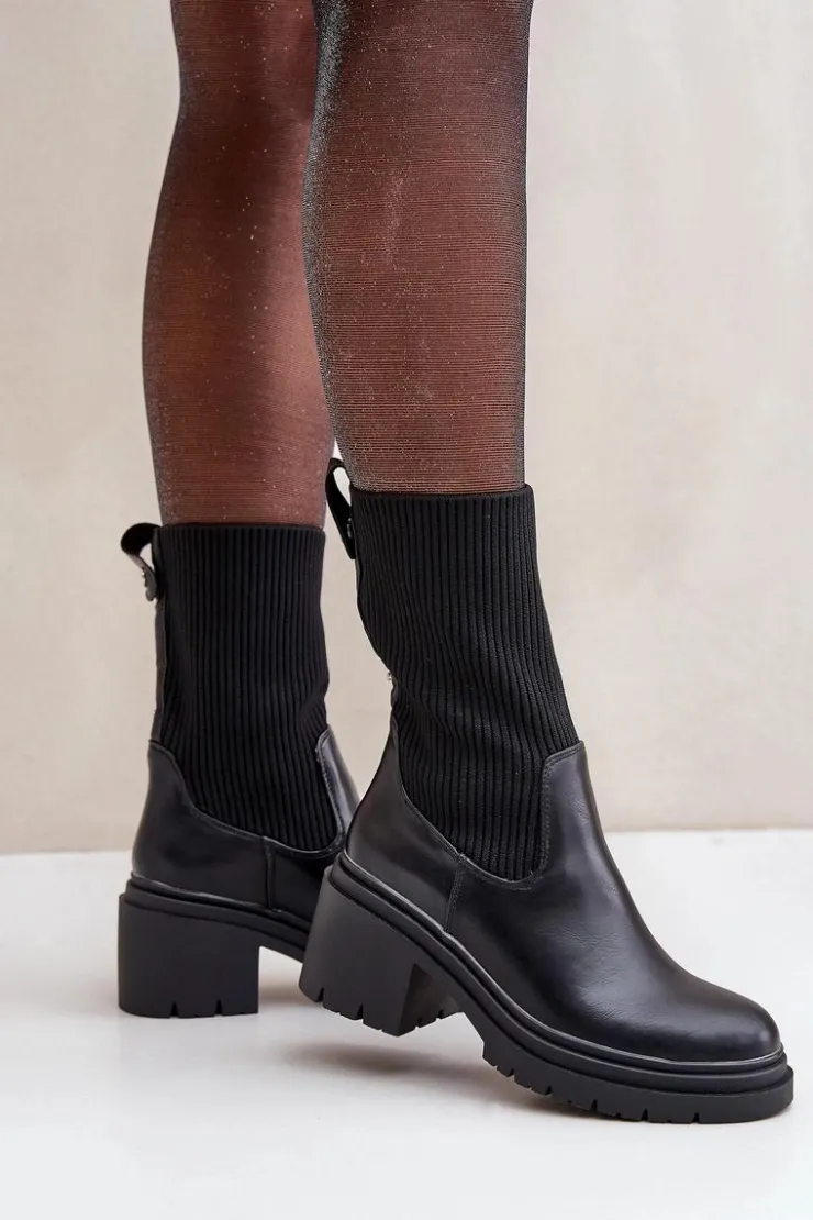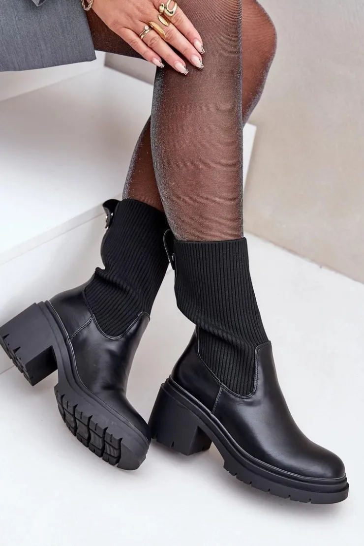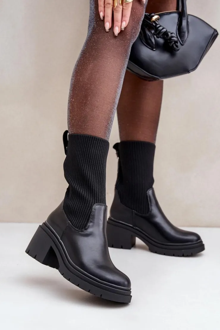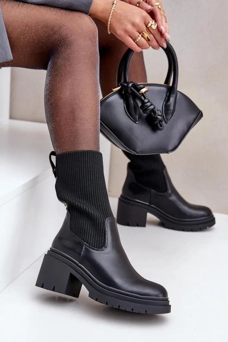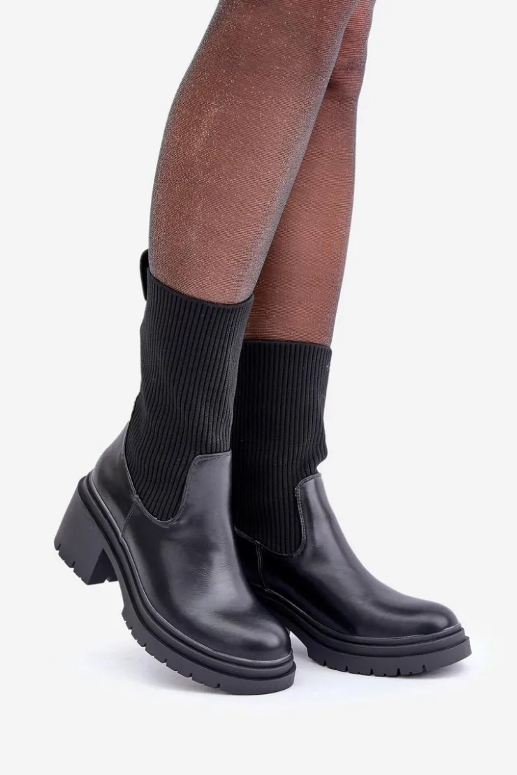 Modne botki damskie z elastyczną, skarpetkową cholewką. Osadzone na stabilnym obcasie typu klocek, gwarantującym wygodę nawet podczas długiego noszenia. Zaokrąglone noski nadają klasycznego wyglądu, sprawiając, że pasują do wielu stylizacji. Idealne na co dzień! Przy wyborze rozmiaru prosimy sugerować się tabelą rozmiarów.