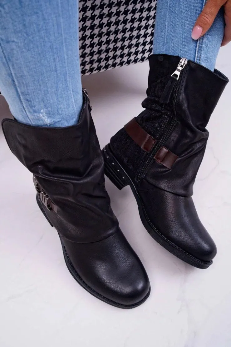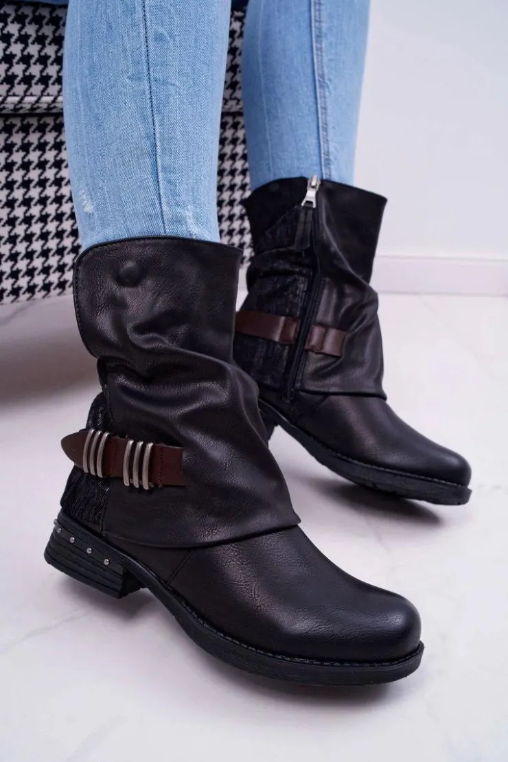 Boto Botki Zimowe Damskie|Botki Płaskie*Botki Damskie Wysokie Kowbojki Czarne Winchester