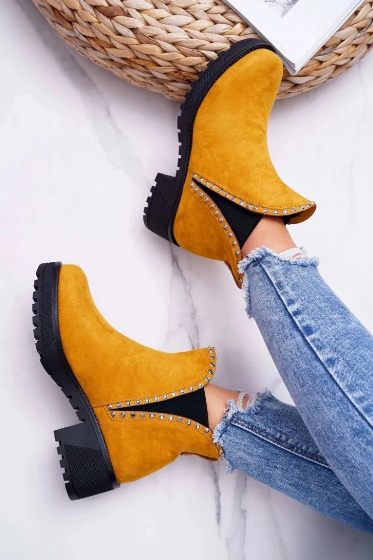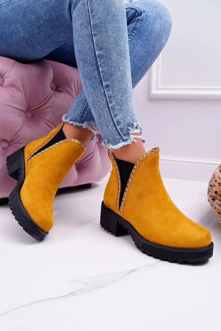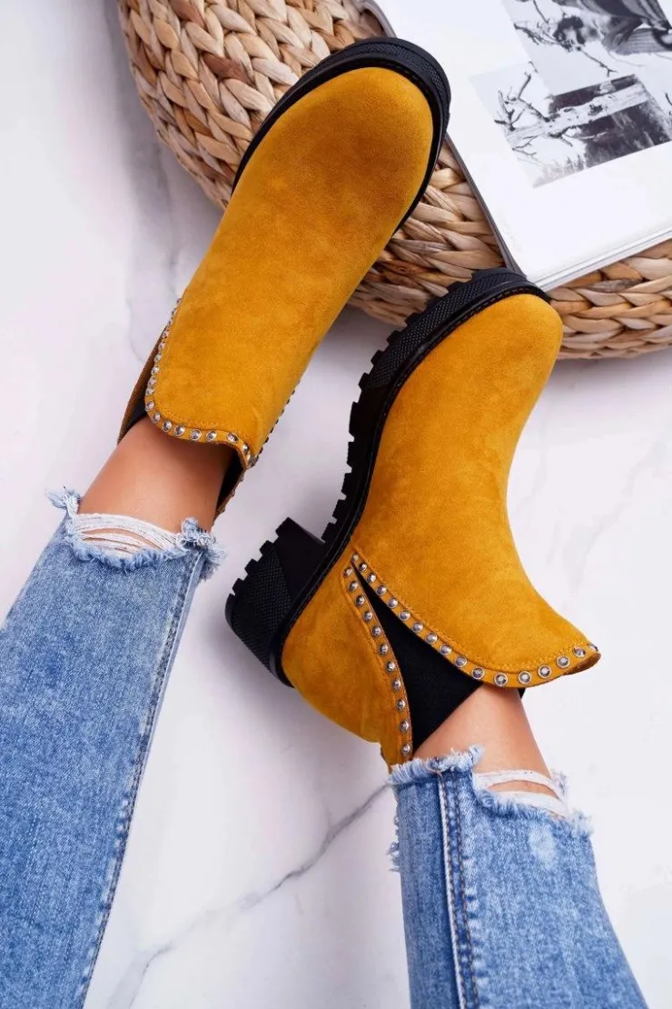 Boto Botki Zimowe Damskie|Brązowe I Beżowe Botki*Damskie Botki Sztyblety Z Cyrkoniami Żółte Sissy