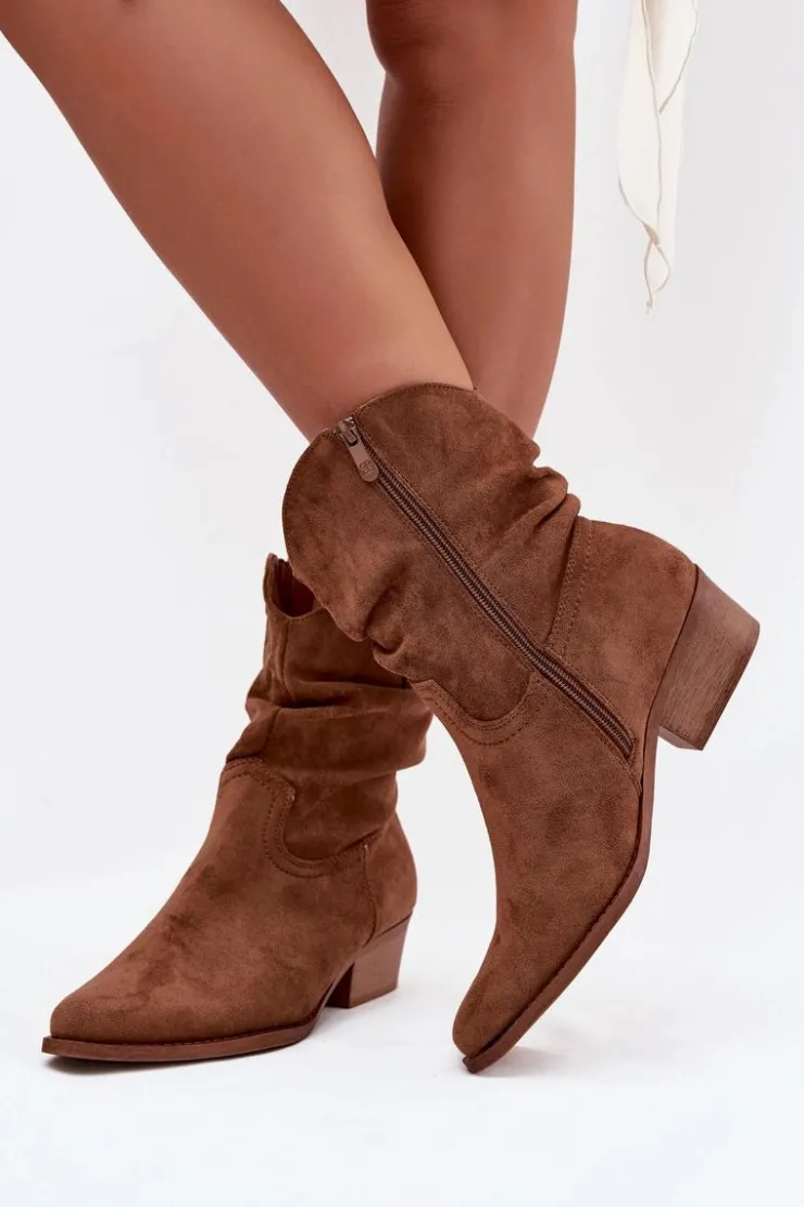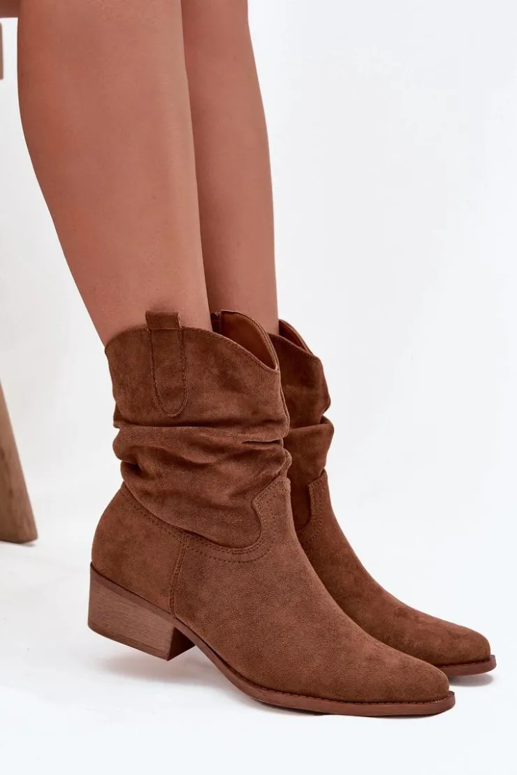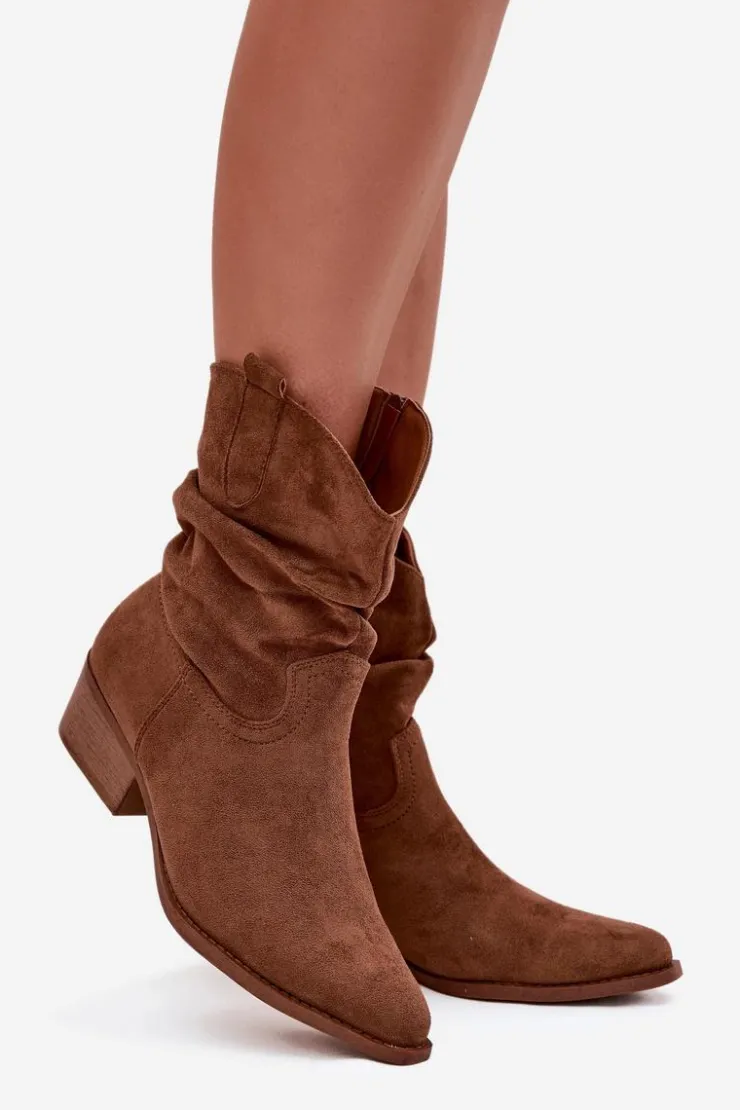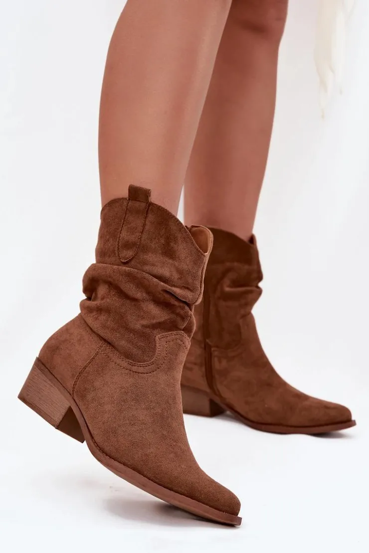 Botki damskie wykonane z eko zamszu. Osadzone na niskim obcasie w formie klocka, zapewniają stabilność i komfort przez cały dzień. Noski w kształcie migdała dodają im subtelności, a zamek błyskawiczny ułatwia zakładanie. Wyróżniają się oryginalną cholewką z marszczeniem, które nadaje im wyjątkowego charakteru. Te botki idealnie komponują się zarówno z codziennymi, jak i bardziej formalnymi stylizacjami. Przy wyborze rozmiaru prosimy sugerować się tabelą rozmiarów.