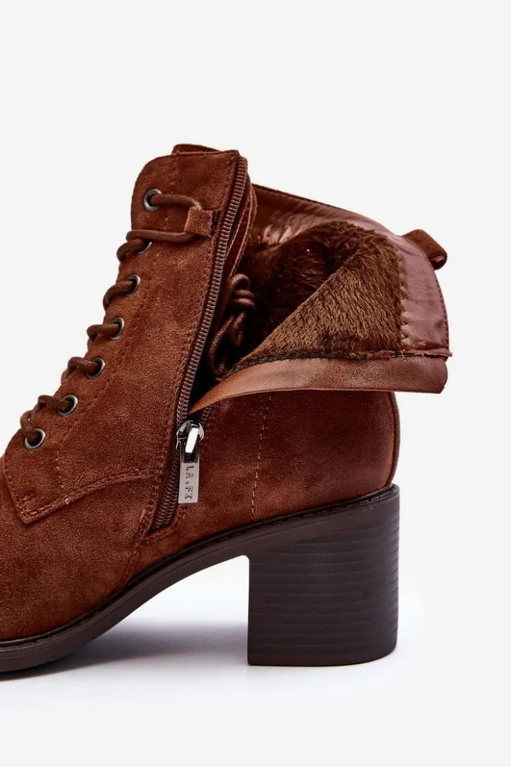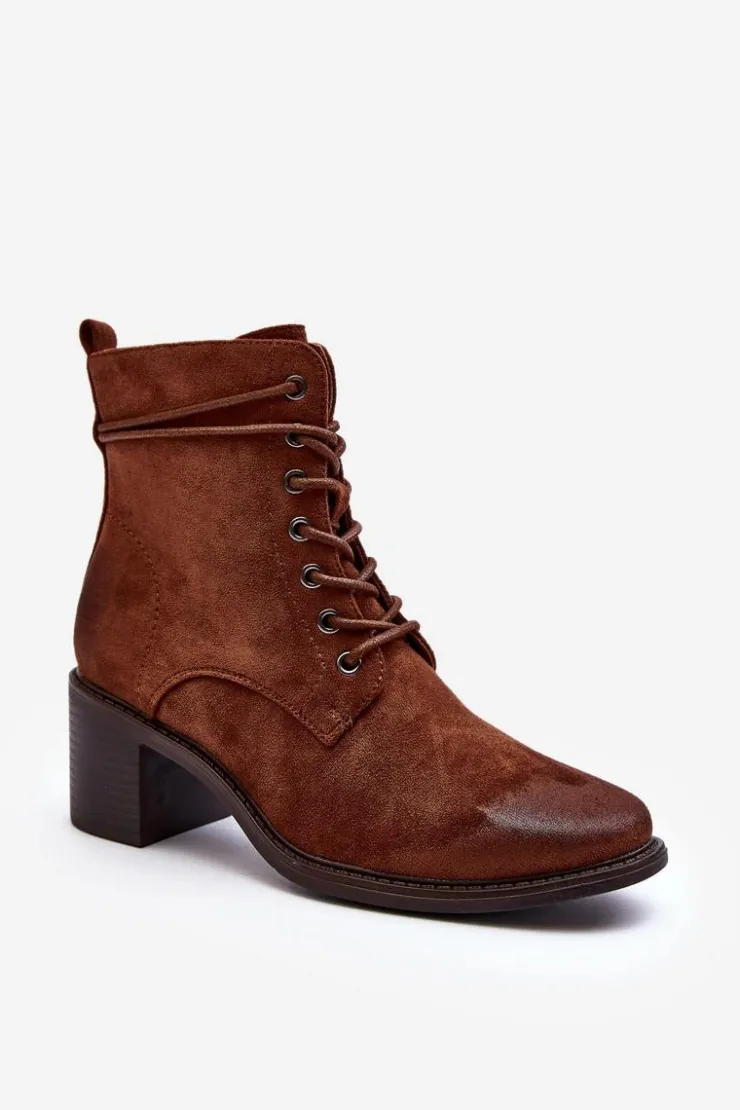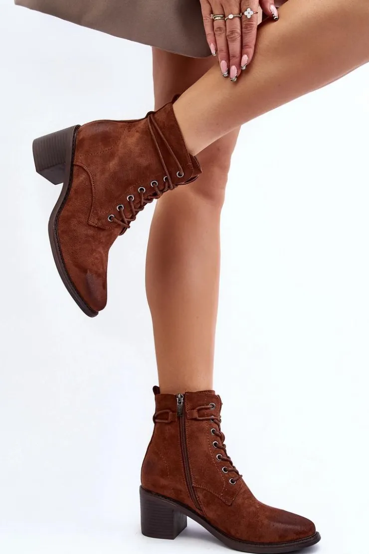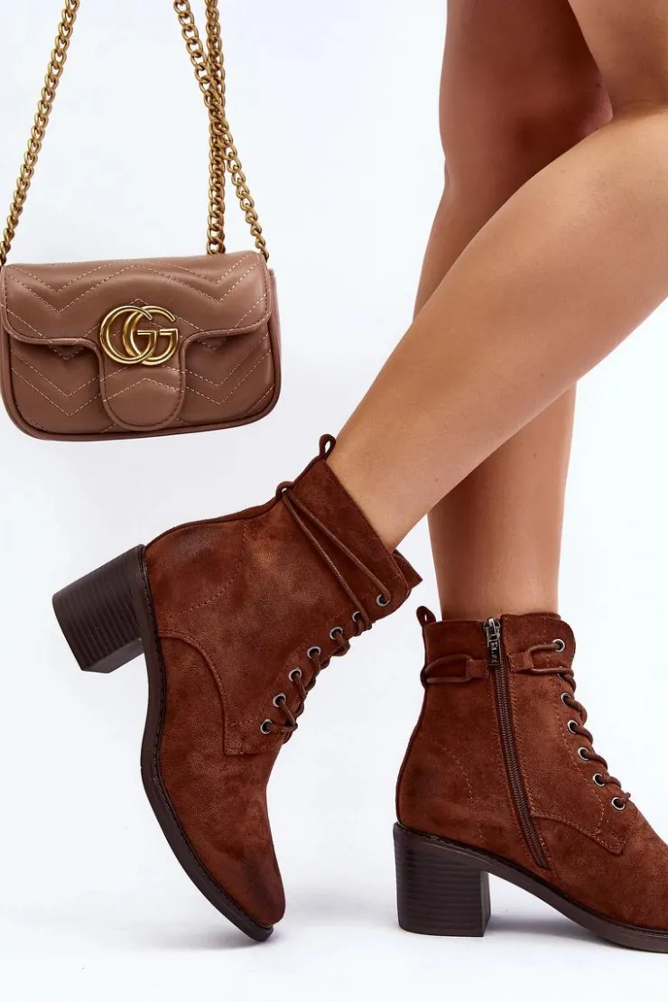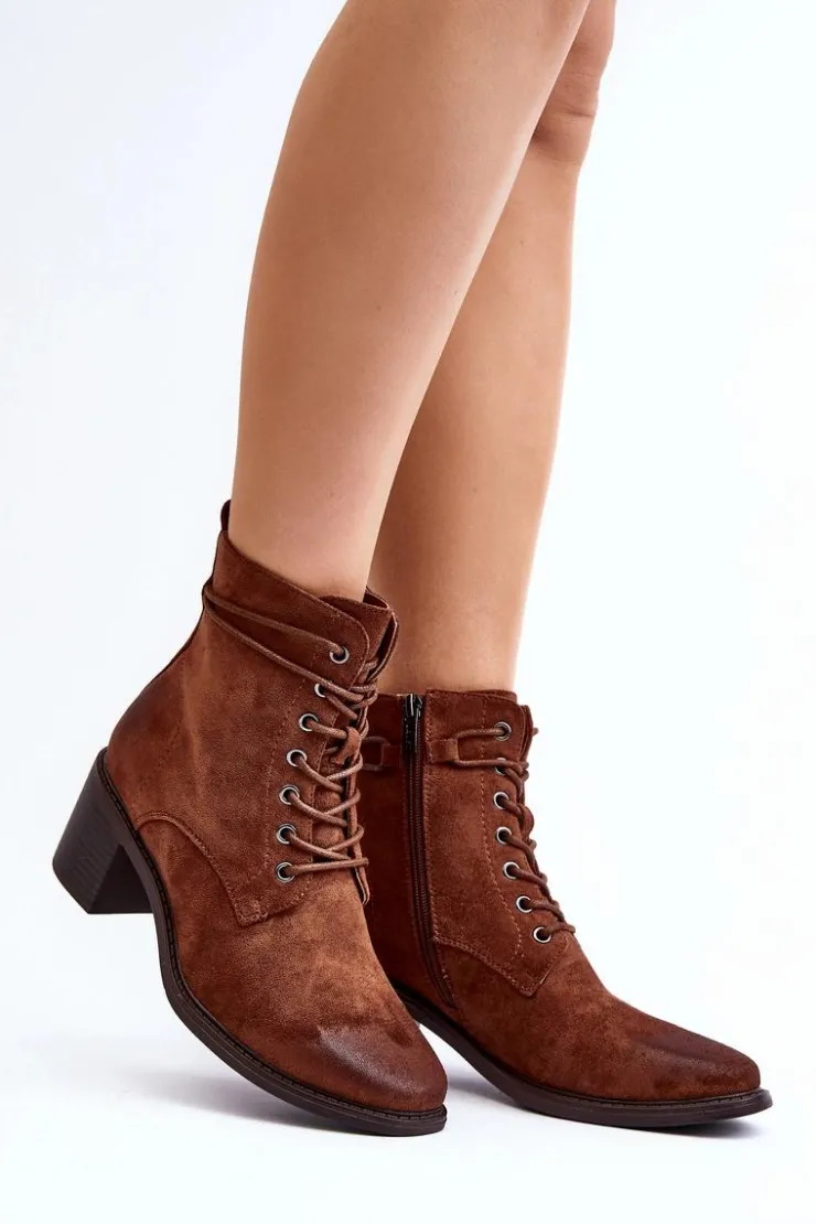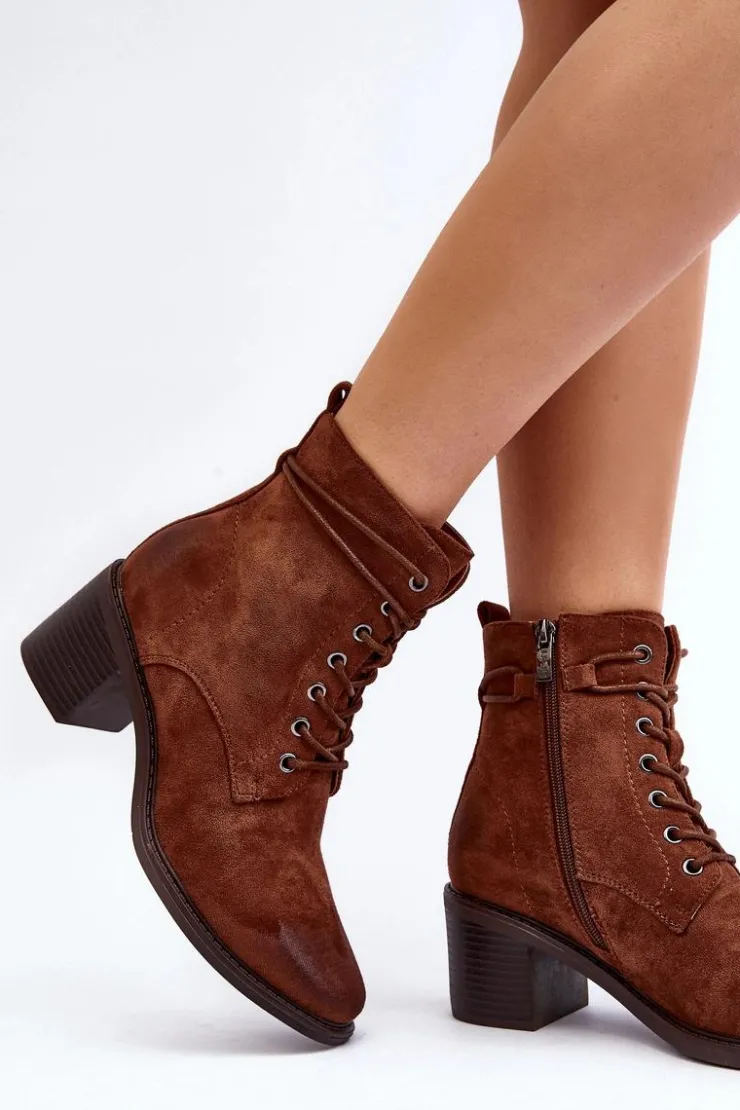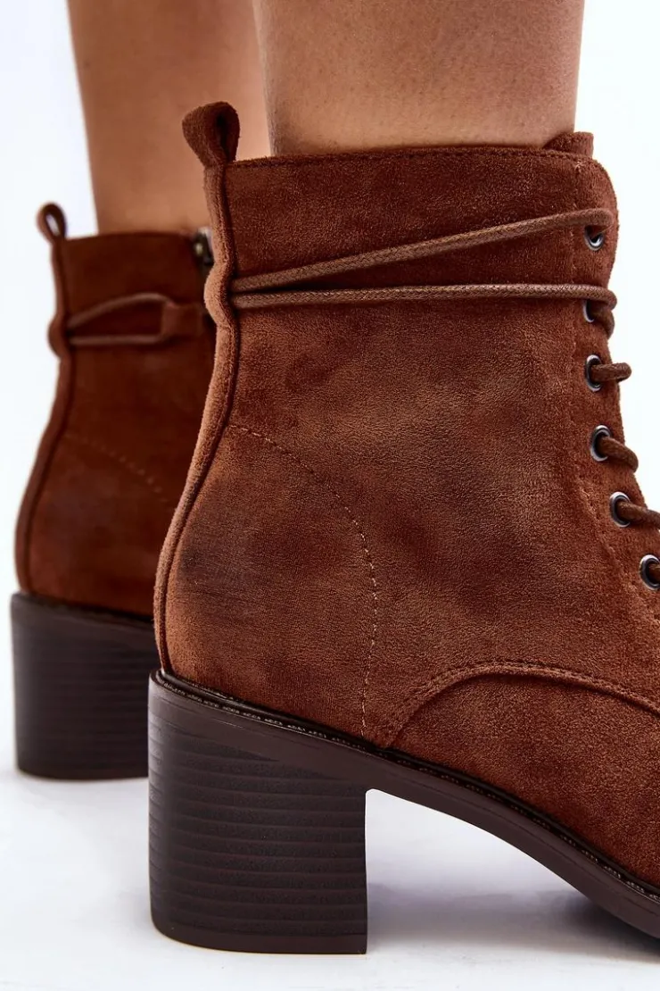 Stylowe i wygodne botki damskie z eko zamszu to idealny wybór na chłodniejsze dni. Niski obcas w postaci słupka sprawia, że są one komfortowe w użytkowanie. Model ten posiada praktyczny suwak, ułatwiający zakładanie oraz dodatkowe sznurowanie. Noski zaokrąglone. Ocieplenie kocem obuwniczym zapewnia ciepło podczas jesienno-zimowych dni. Te botki to doskonałe uzupełnienie wielu stylizacji! Przy wyborze rozmiaru prosimy sugerować się tabelą rozmiarów.