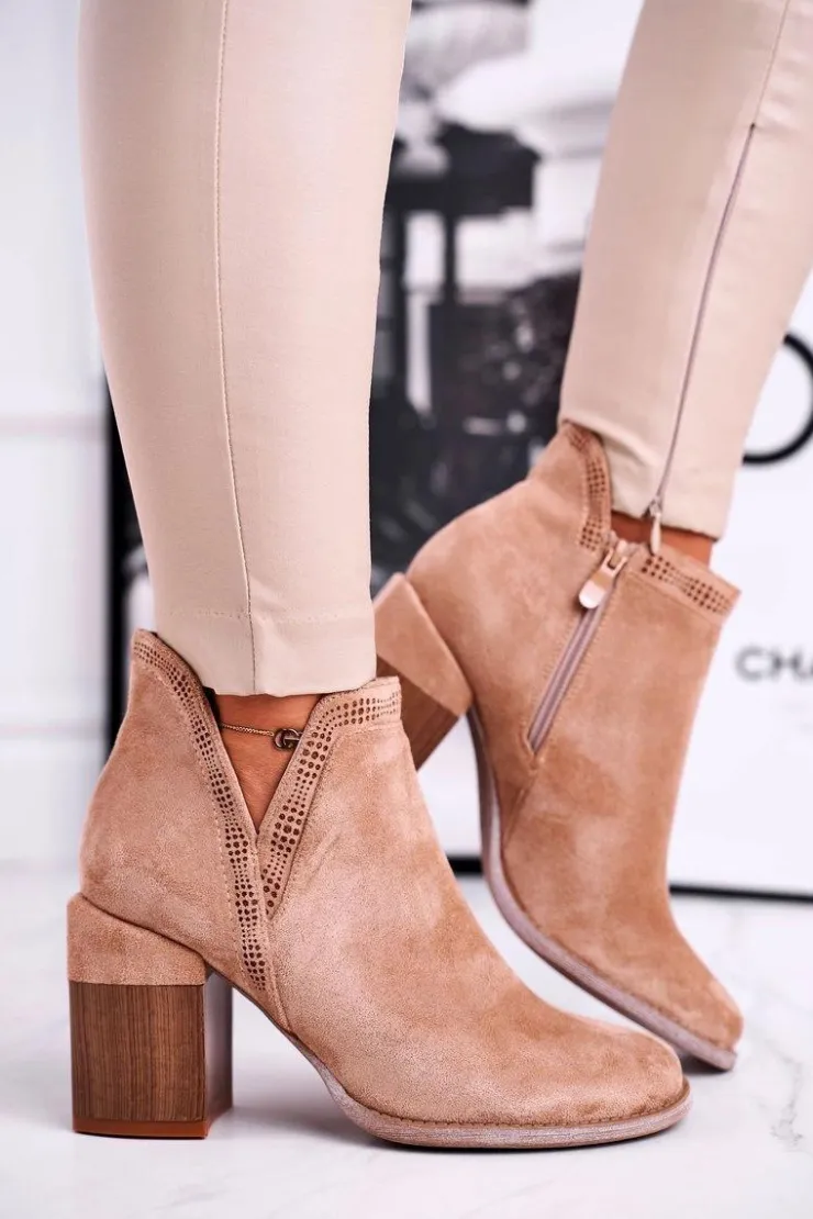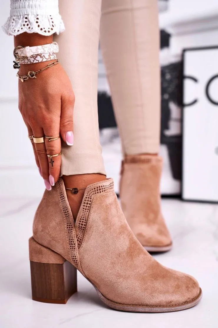 Boto Brązowe I Beżowe Botki|Botki Na Obcasie*Damskie Botki Na Słupku Wycięte Khaki Meliori Dream