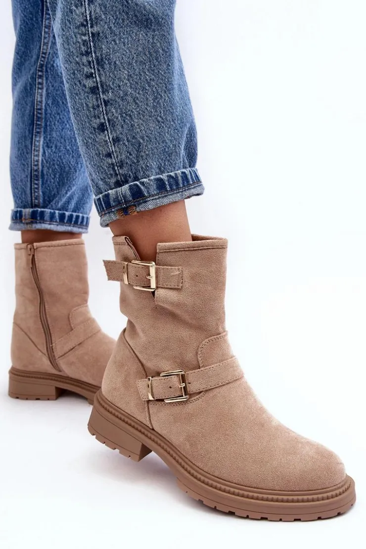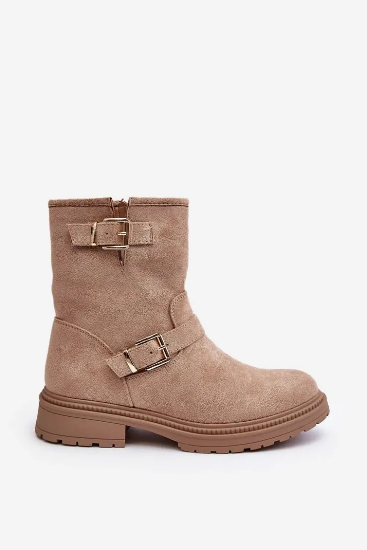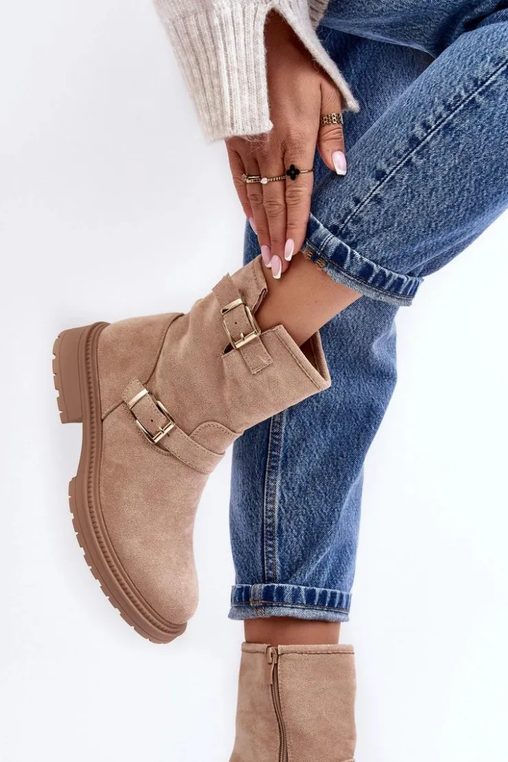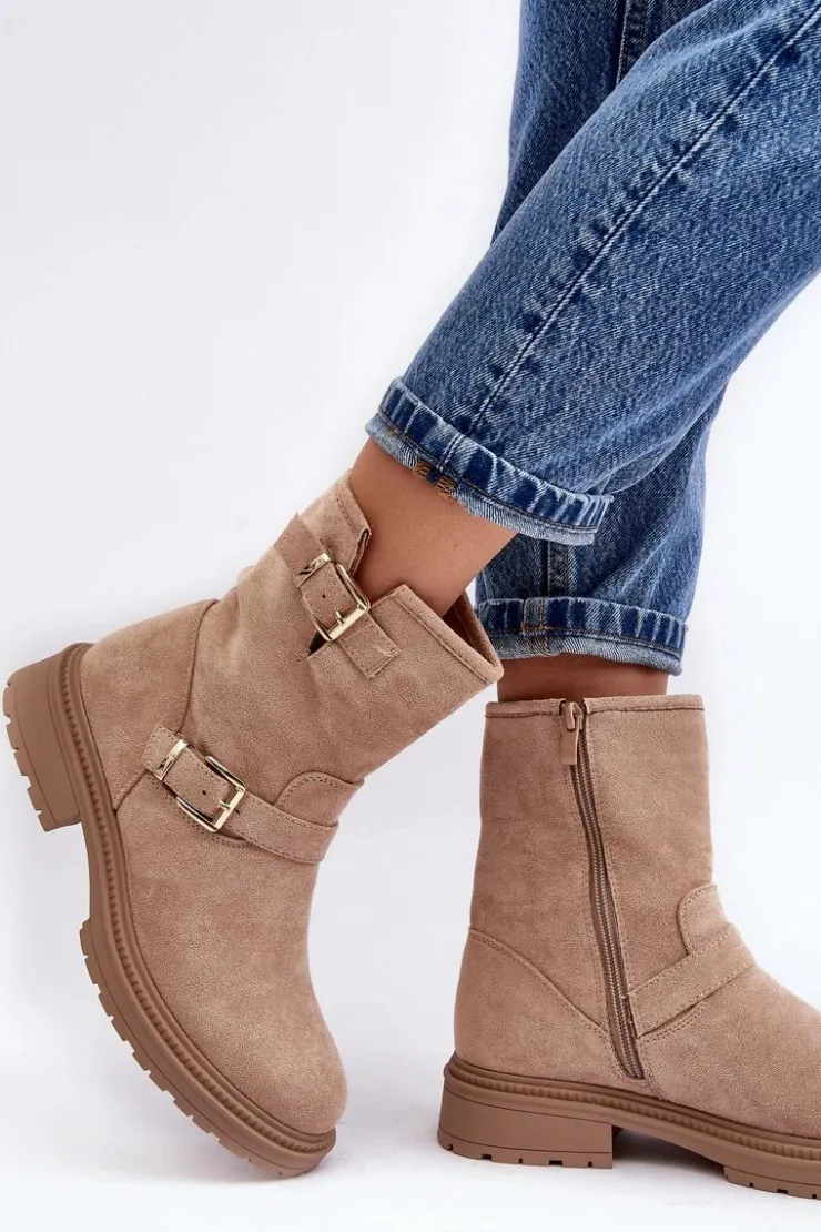 Klasyczne botki damskie z cholewką za kostkę. Osadzone na płaskim obcasie. Zapinane na suwak z boku. Noski zaokrąglone. Zapiętek usztywniony. Cholewka ozdobiona paskami z klamrą. Miękka eko skórzana wkładka zapewni komfort podczas użytkowania. Idealne do wielu jesiennych stylizacji! Przy wyborze rozmiaru prosimy sugerować się tabelą rozmiarów.