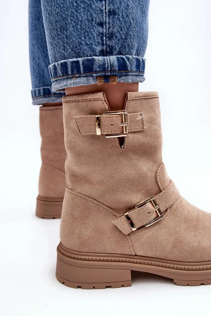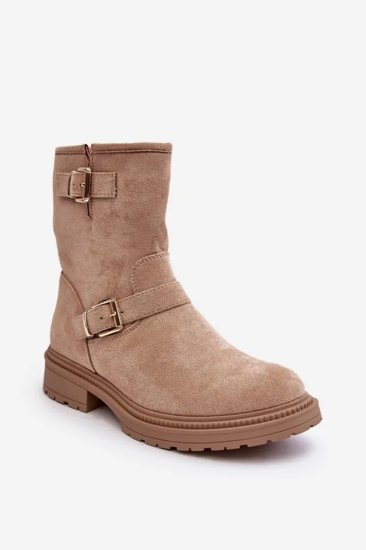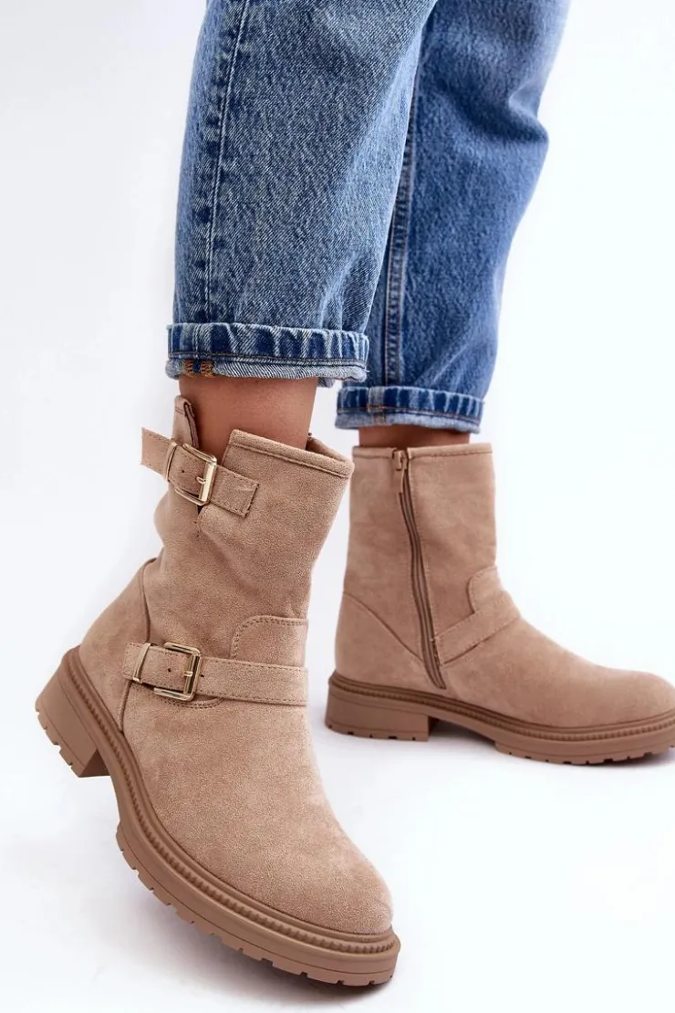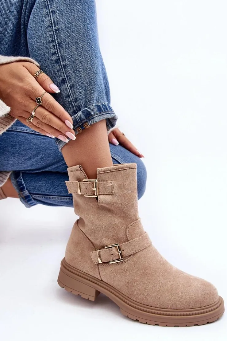 Klasyczne botki damskie z cholewką za kostkę. Osadzone na płaskim obcasie. Zapinane na suwak z boku. Noski zaokrąglone. Zapiętek usztywniony. Cholewka ozdobiona paskami z klamrą. Miękka eko skórzana wkładka zapewni komfort podczas użytkowania. Idealne do wielu jesiennych stylizacji! Przy wyborze rozmiaru prosimy sugerować się tabelą rozmiarów.