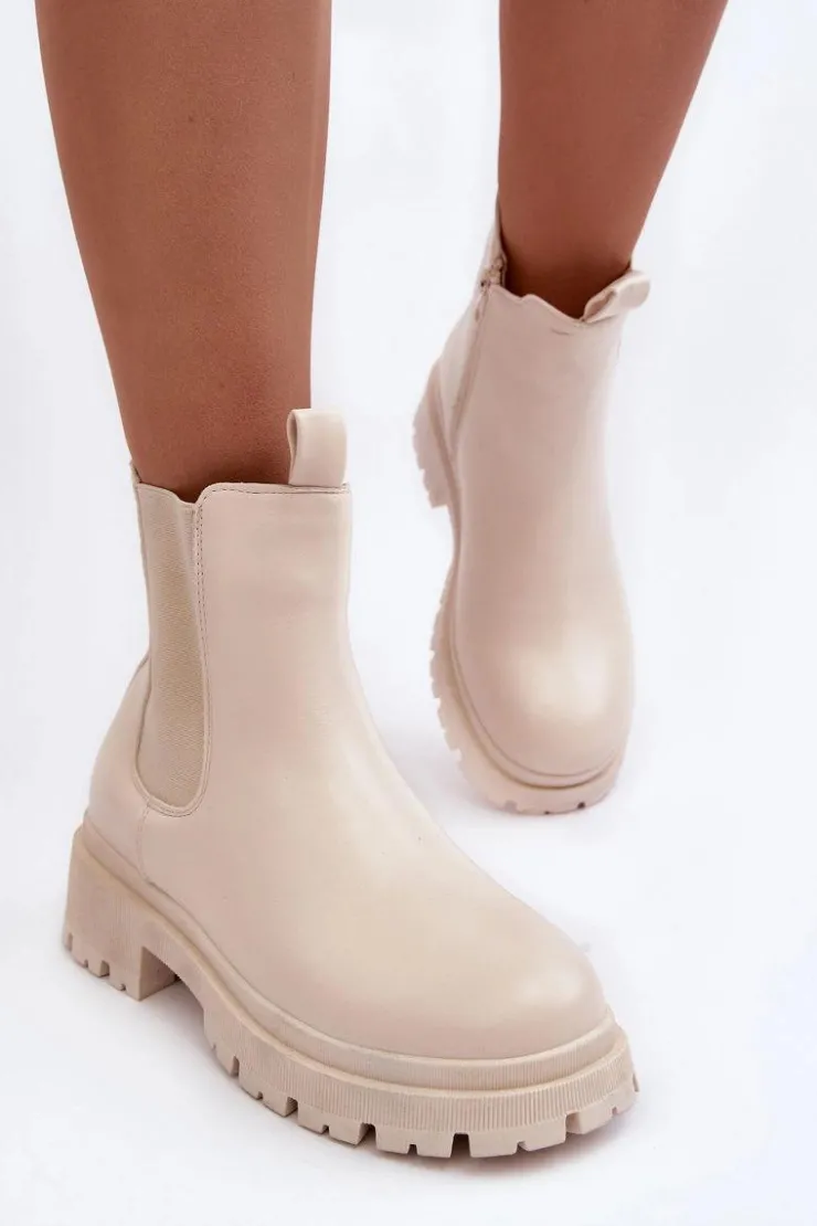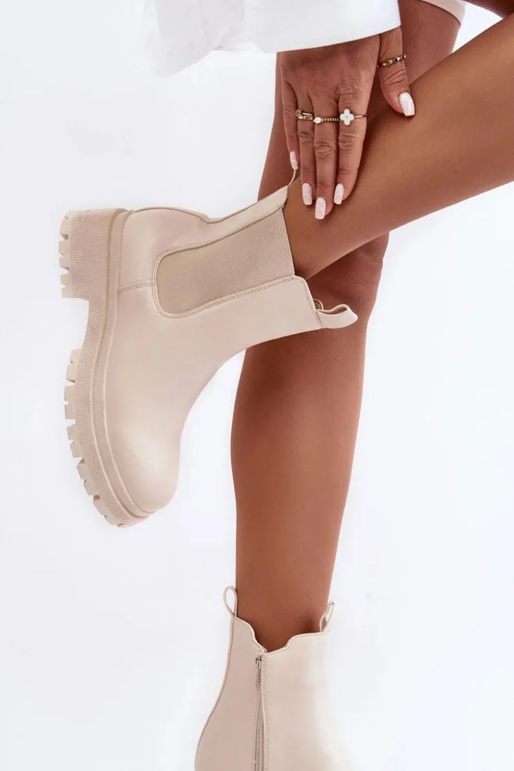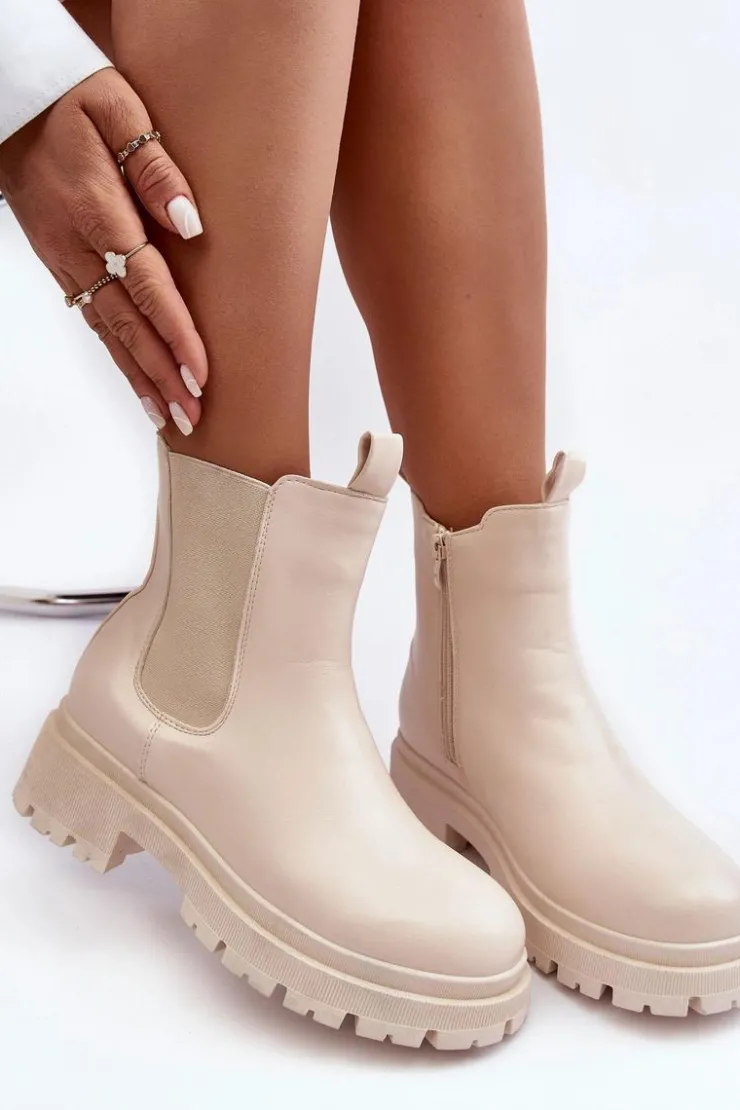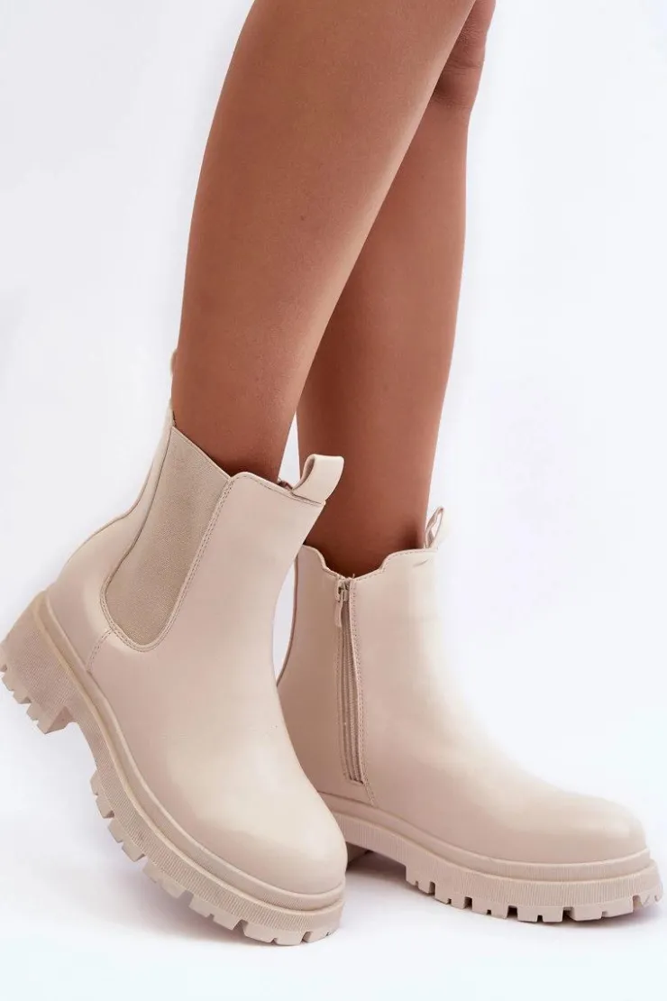 Boto Brązowe I Beżowe Botki|Botki Płaskie*Skórzane Botki Sztyblety Na Suwak Beżowe Pitrese