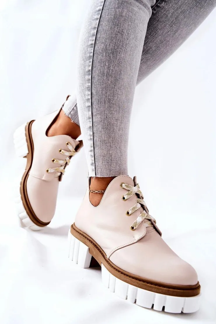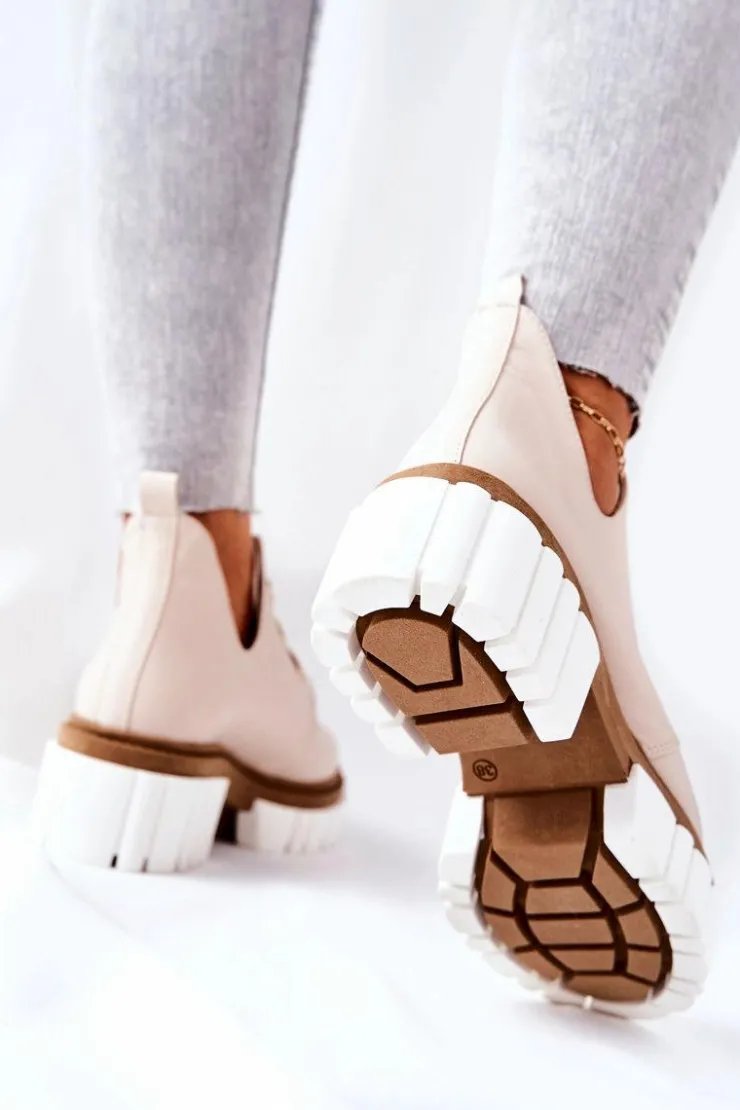Botki na masywnej platformie to HIT tego sezonu. Wykonane w całości z naturalnej skóry. Posiadają efektowne wycięcia na boku cholewki. Wiązanie sprawia, że buty można dopasować do własnych wymagań. Ten model sprawi, że każda stylizacja będzie naprawdę wyjątkowa! Przy wyborze rozmiaru prosimy sugerować się tabelą rozmiarów.