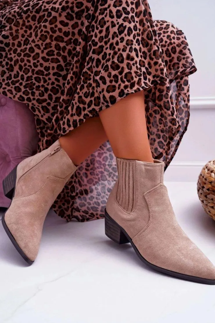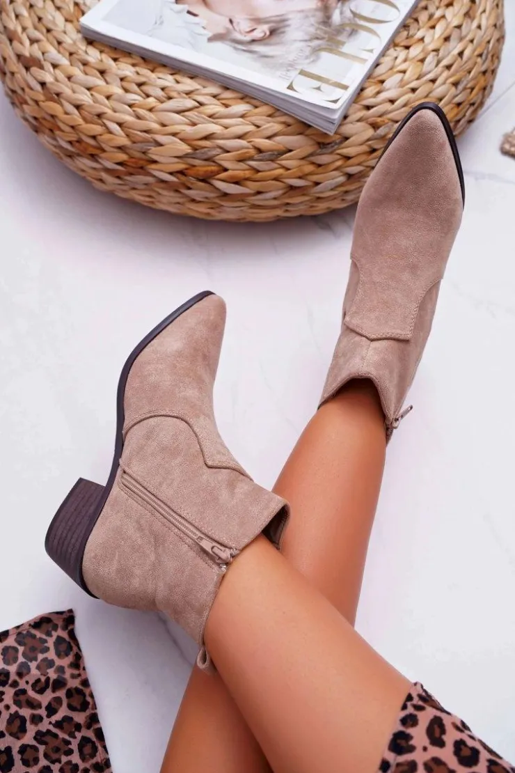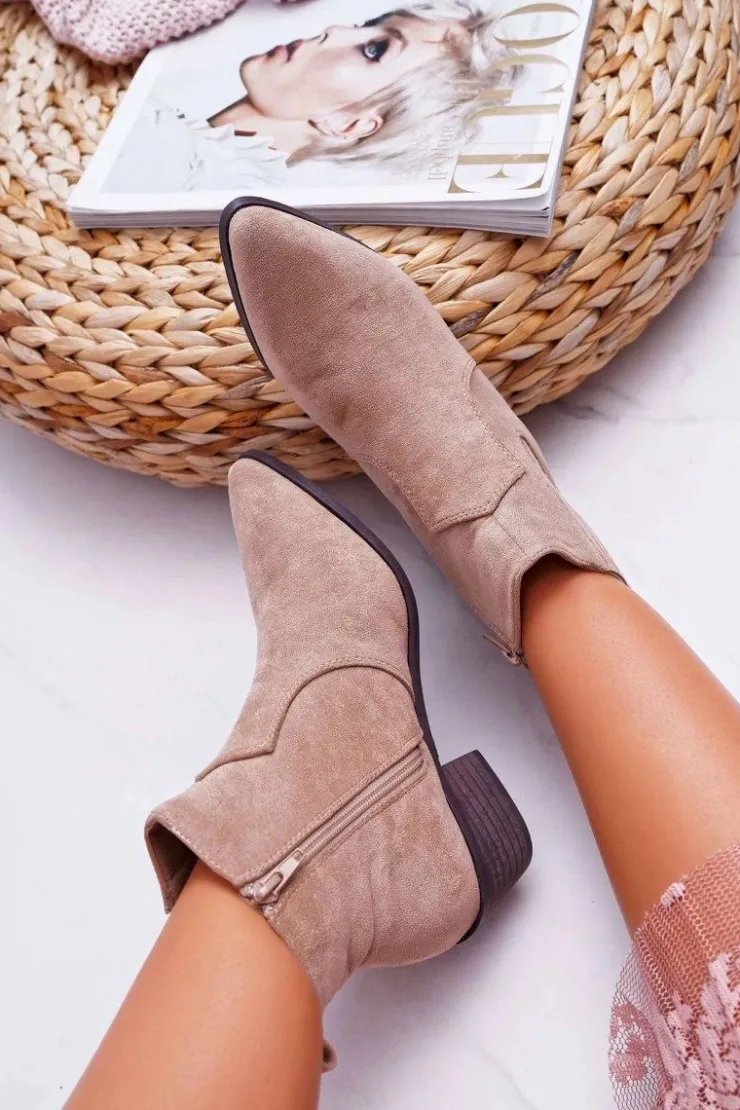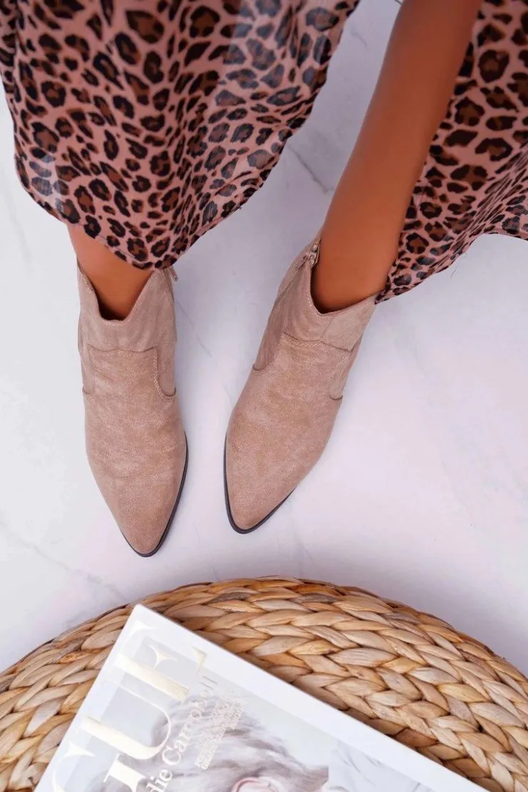 Boto Brązowe I Beżowe Botki|Botki Zamszowe*Botki Damskie Płaski Obcas Beżowe Umberco