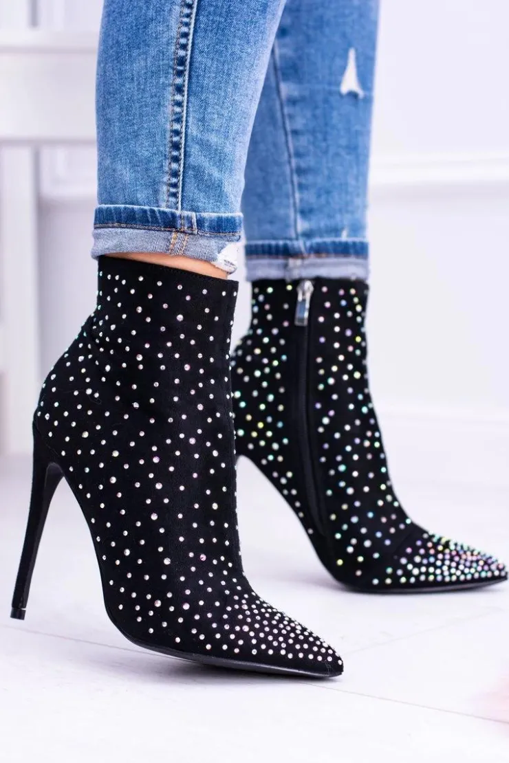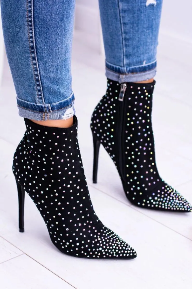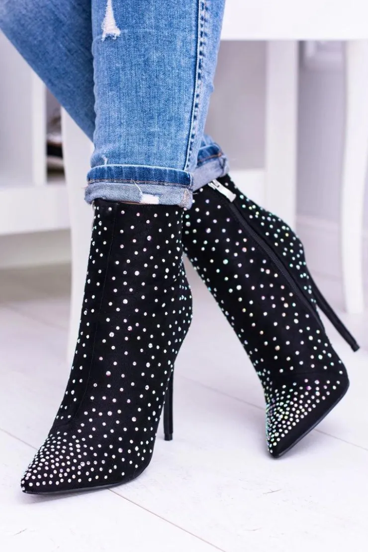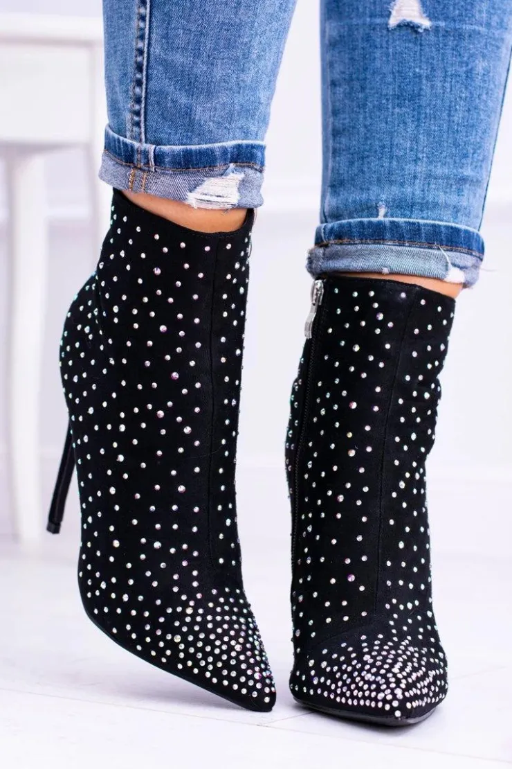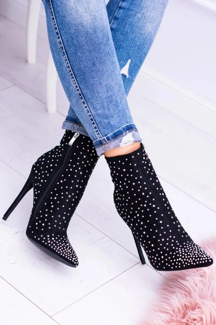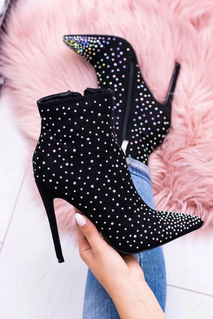 Wysokie botki nie muszą być wielkie i ciężkie. Nasza propozycja to eleganckie, zamszowe buty na szpilce, które będą dopełnieniem jesiennych stylizacji. Botki są niezwykle wygodne. Sprawdzą się do eleganckich stylizacji. Dodatkową ozdobą są cyrkonie na całej powierzchni buta. Nie czekaj dłużej i kup teraz! Przy wyborze rozmiaru prosimy kierować się tabelą rozmiarów.
