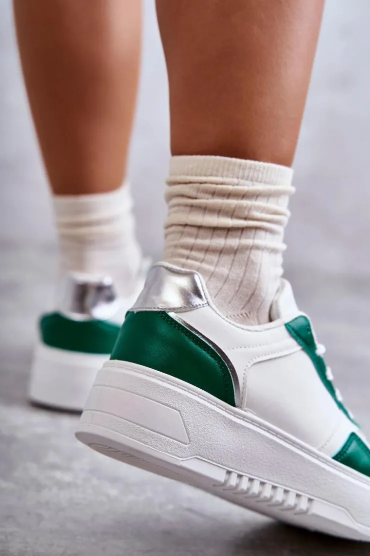 Boto Buty Sportowe Na Platformie|Sneakersy Damskie*Damskie Niskie Buty Sportowe Na Platformie Biało-Zielone Kyllie
