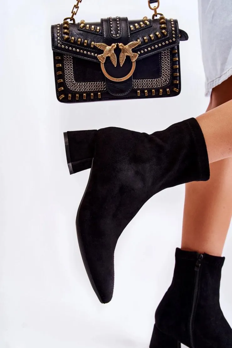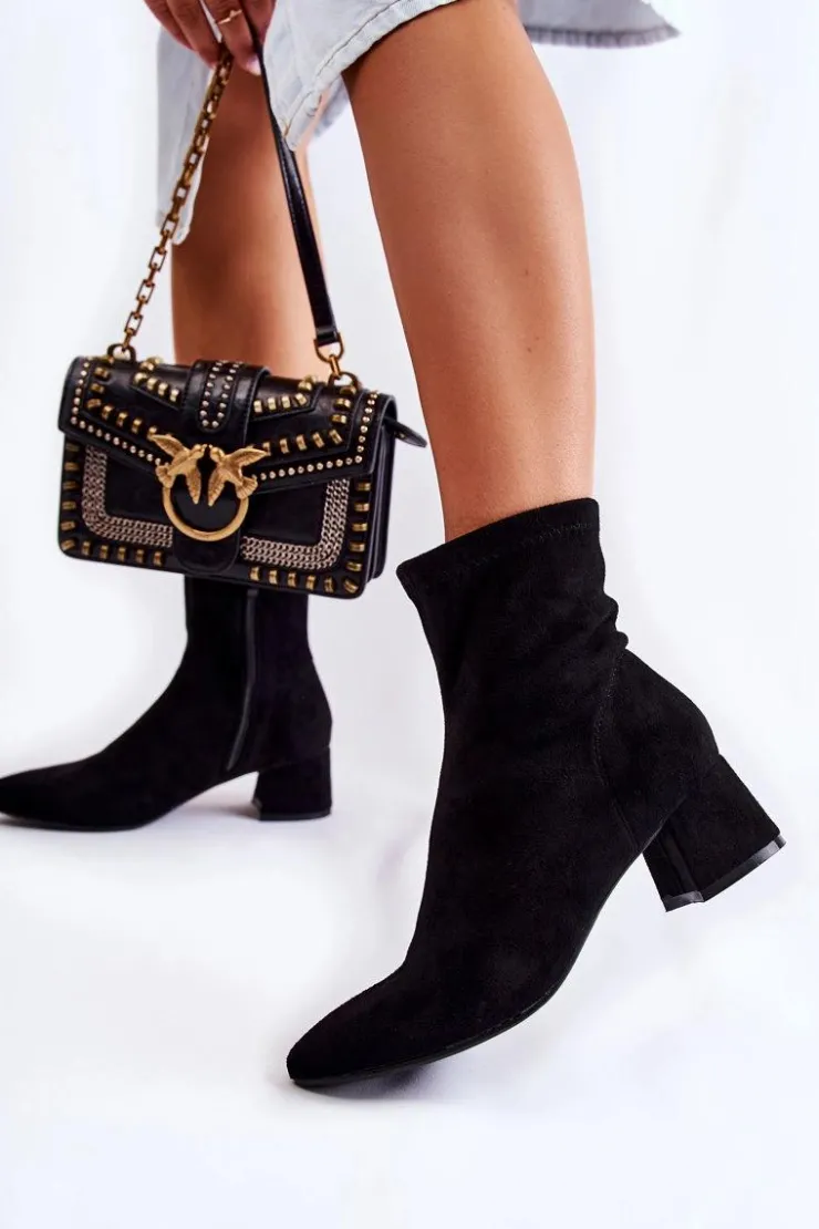 Boto Czarne Botki|Botki Na Obcasie*Zamszowe Damskie Wysokie Botki Czarne Gloriss