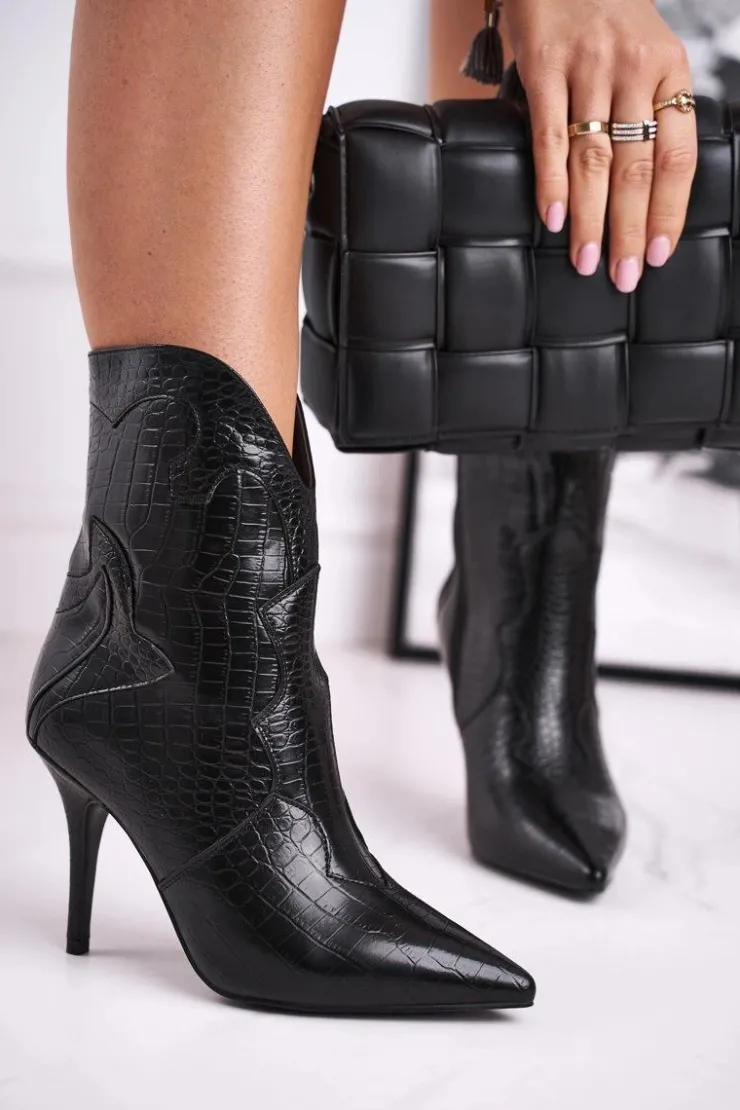 Boto Czarne Botki|Botki Zimowe Damskie*Botki Damskie Na Szpilce Kowbojki Czarne Estella