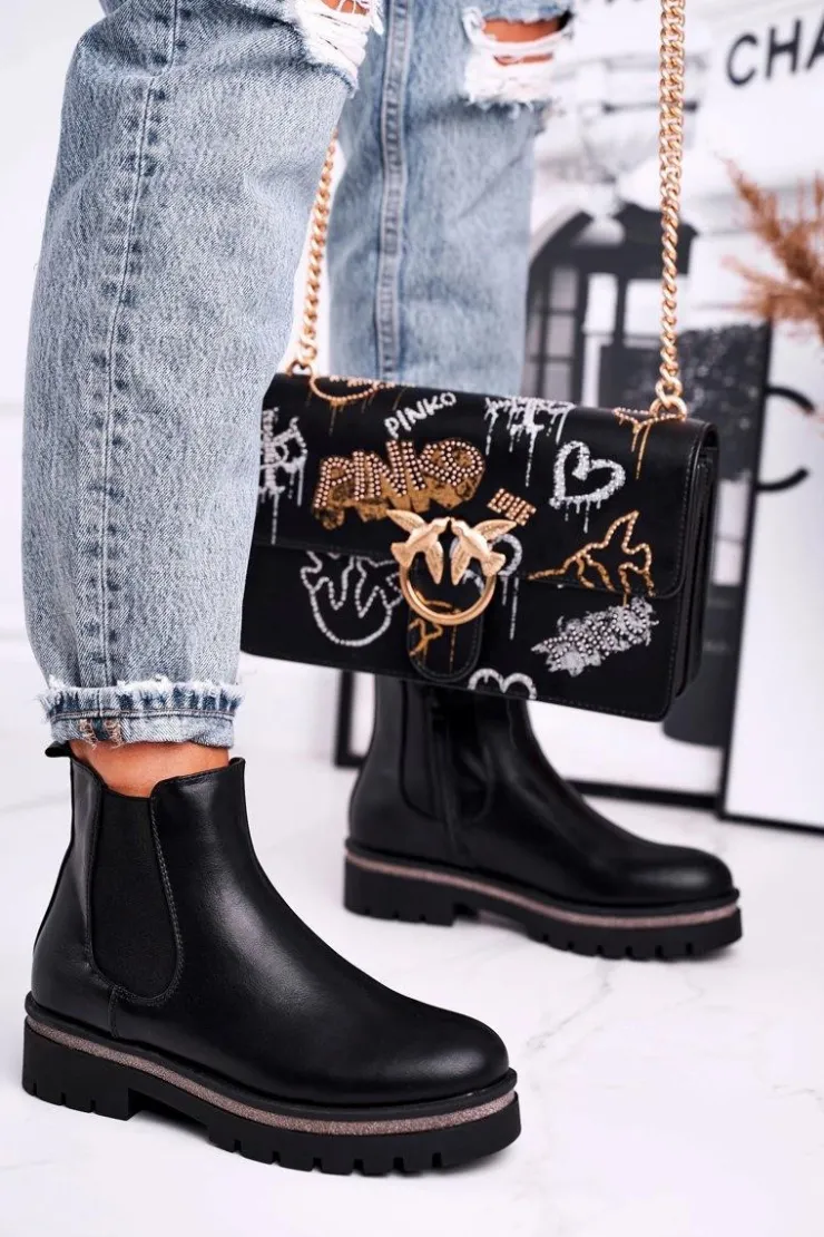 Boto Czarne Botki|Botki Zimowe Damskie*Botki damskie sztyblety czarne Stiletto