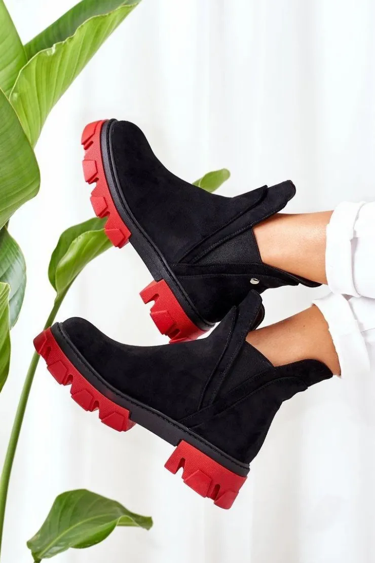 Sztyblety damskie wykonane z eko zamszu. Wnętrze botków ocieplone jest miłym w dotyku kocem obuwniczym. Przy wyborze rozmiaru prosimy sugerować się tabelą rozmiarów.