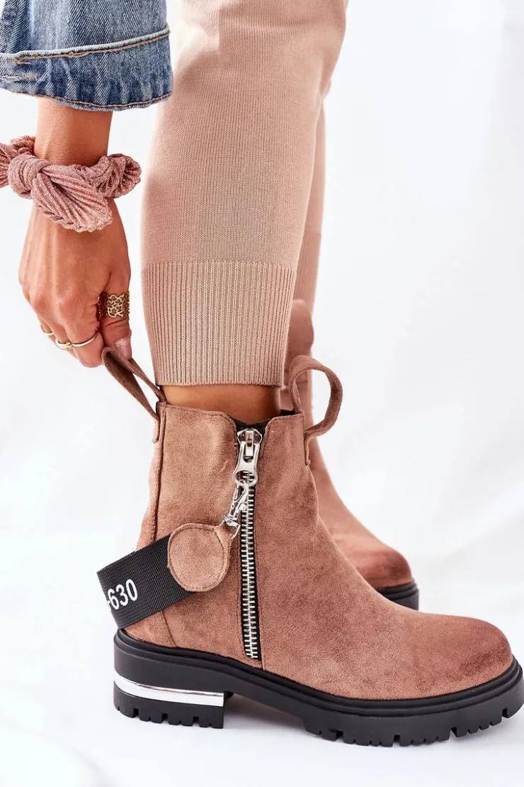 Botki damskie wykonane z eko zamszu. Wnętrze ocieplone jest miłym w dotyku kocem obuwniczym. Przy wyborze rozmiaru prosimy sugerować się tabelą rozmiarów.