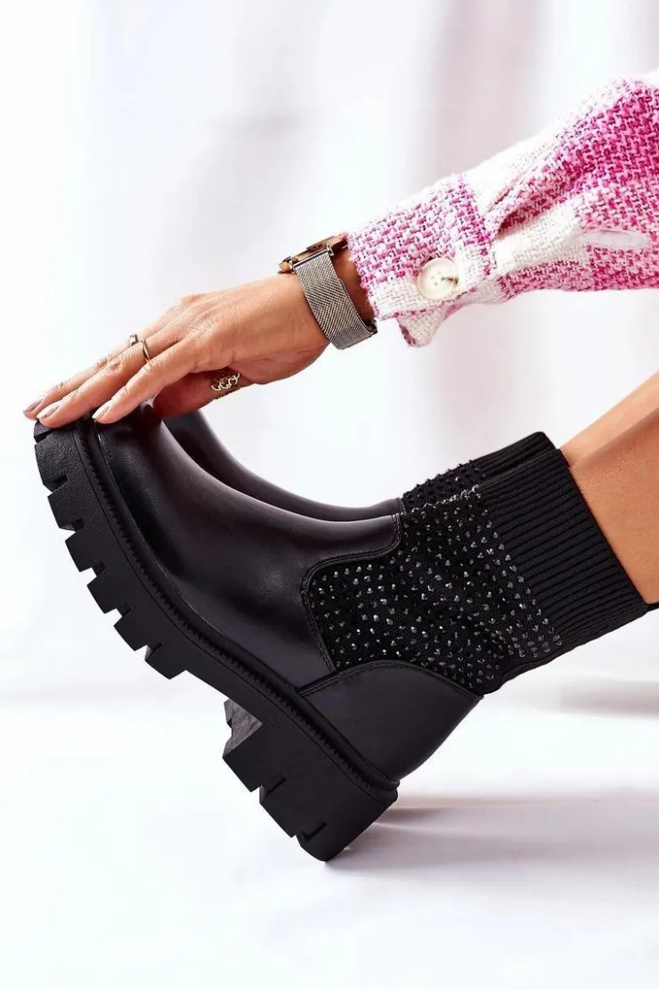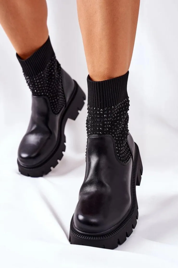 Wyjątkowe botki wykonane z elastycznej tkaniny. Masywna platforma i dopasowana cholewka wysmuklą Twoje nogi! Przy wyborze rozmiaru prosimy sugerować się tabelą rozmiarów.