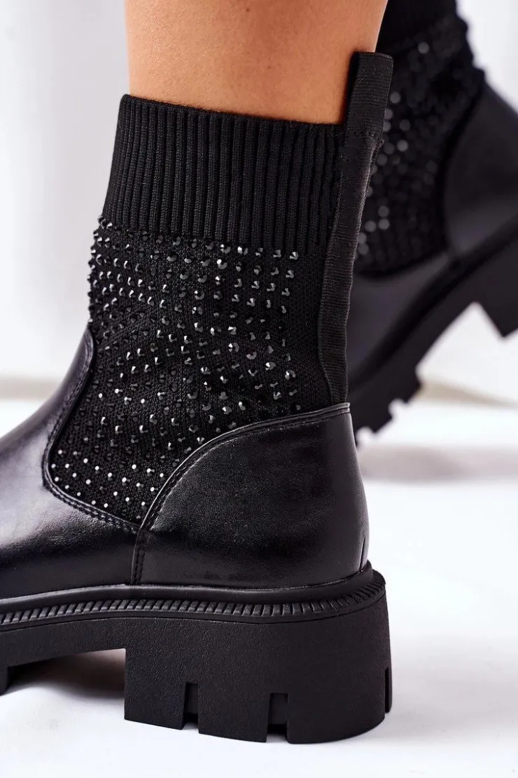 Clearance Boto Damskie Skórzane Klapki Z Ozdobą Czarne Roysa