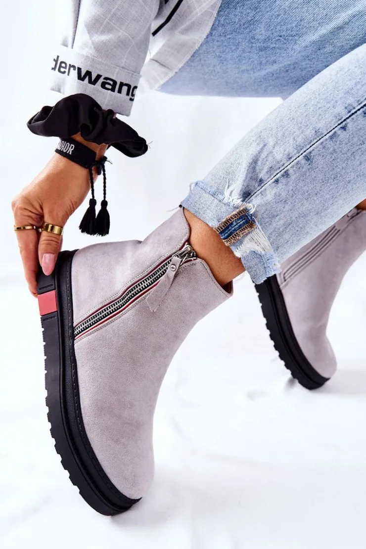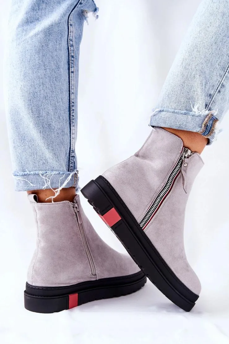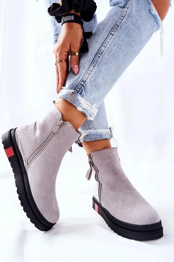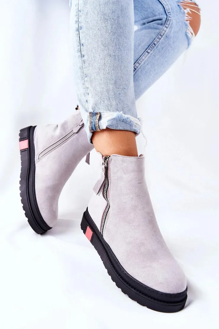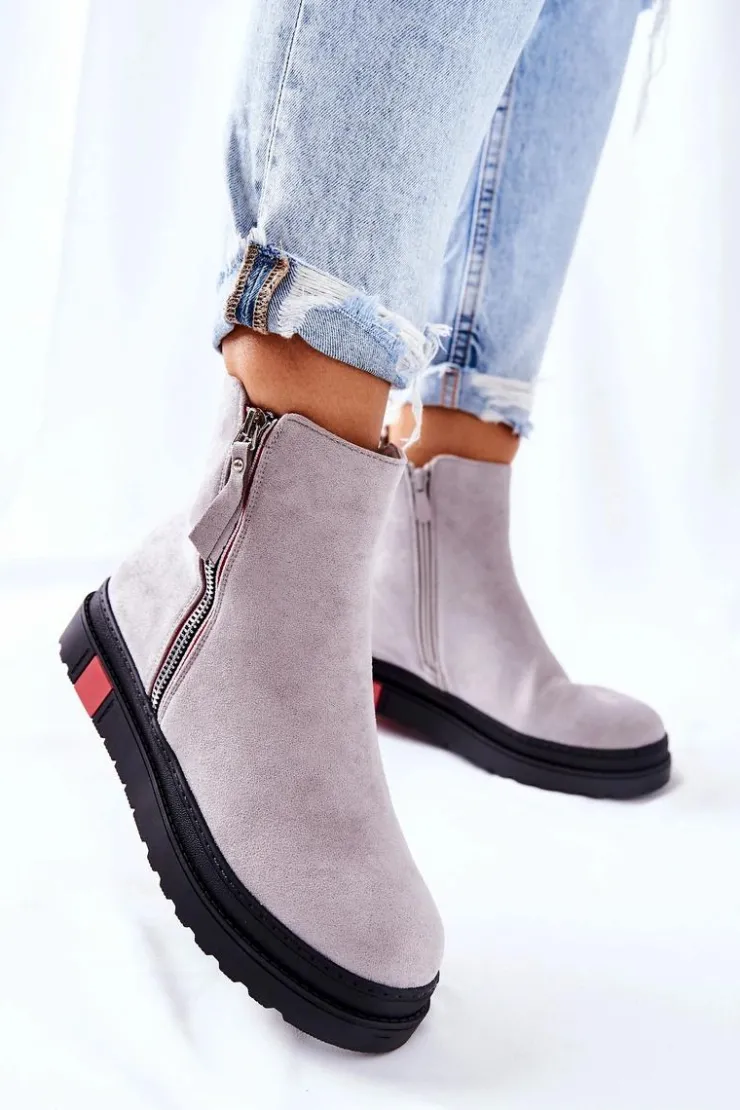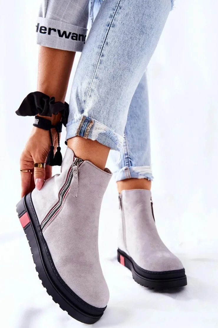 Boto Czarne Botki|Botki Zimowe Damskie*Zamszowe Botki Sztyblety Na Platformie Szare Nessa