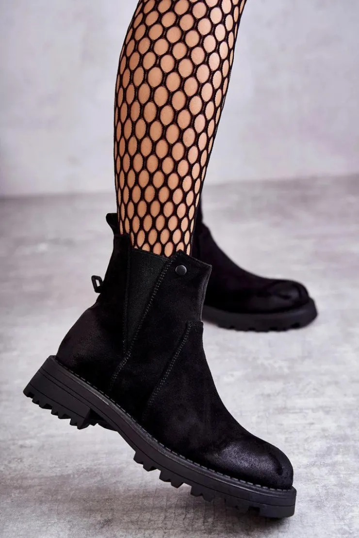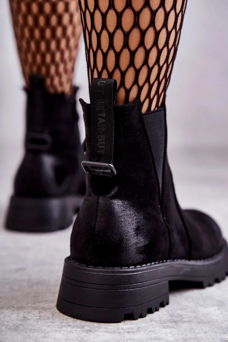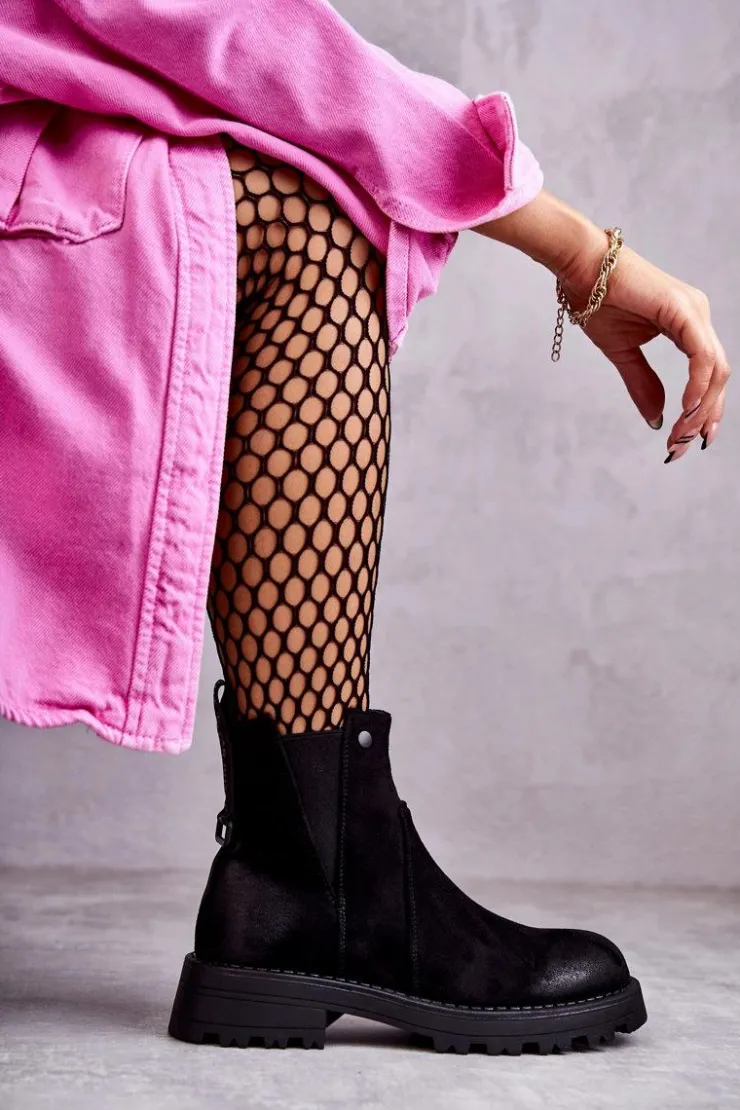 Klasyczne botki damskie to HIT tej jesieni! Posiadają z tyłu wszytą ozdobę z napisem. Gumka z boku cholewki pozwoli na odpowiednie dopasowanie do tęgości nogi. Osadzone na płaskim, stabilnym obcasie ze żłobieniami. W środku botki posiadają ocieplenie w postaci koca obuwniczego. Usztywniany zapiętek zapewni stabilizację nogi podczas użytkowania. Przy wyborze rozmiaru prosimy sugerować się tabelą rozmiarów.