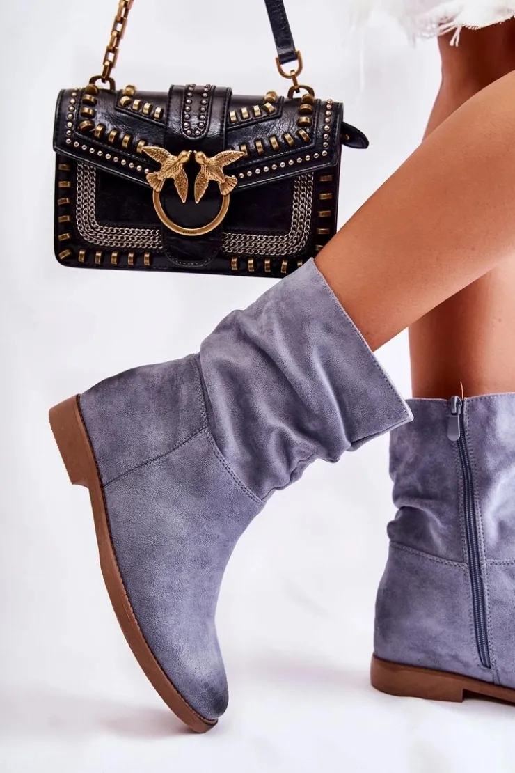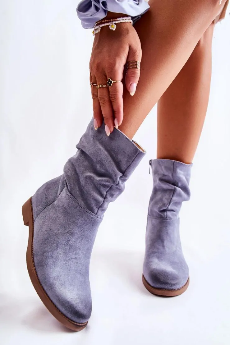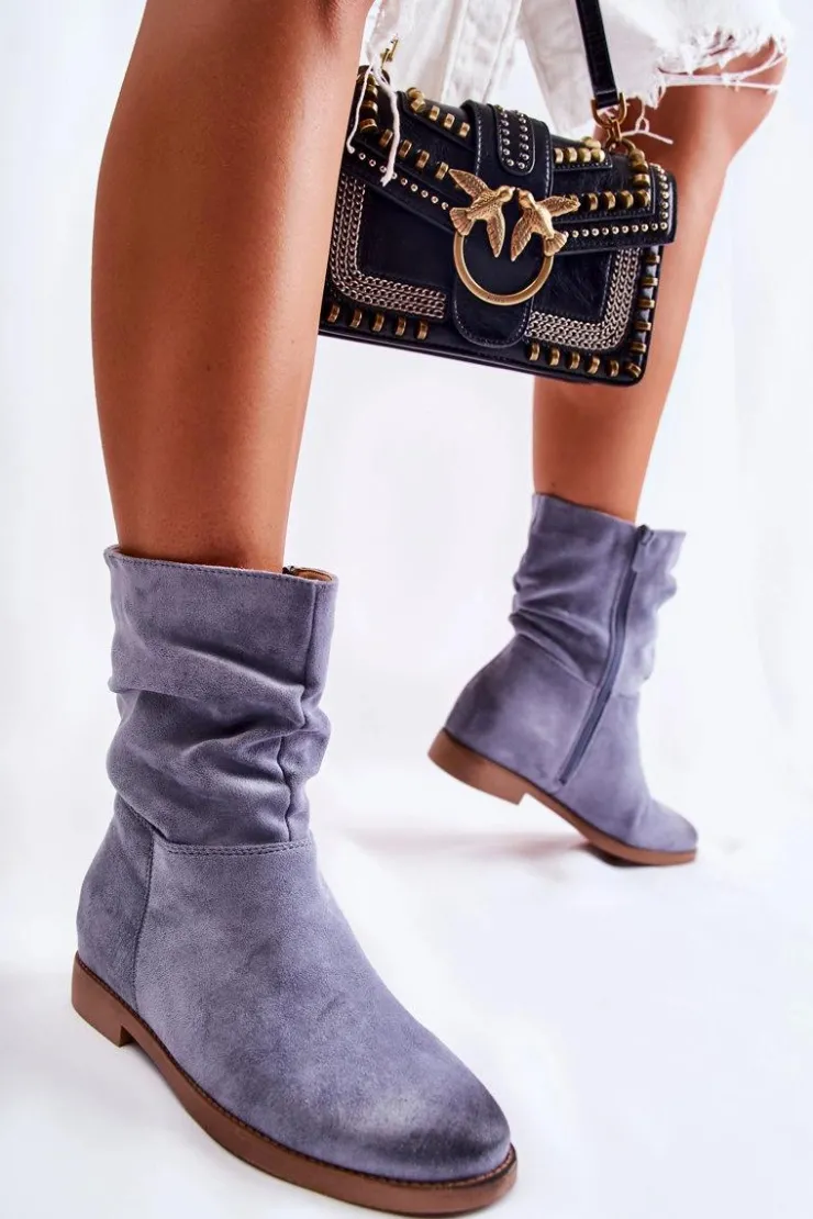 Boto Czarne Botki|Brązowe I Beżowe Botki*Damskie Zamszowe Wysokie Botki Niebieskie Venis